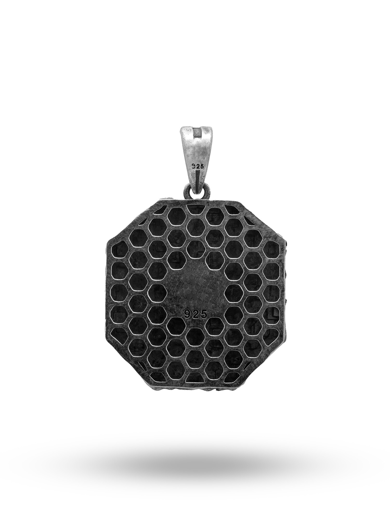 Big Sterling Silver Pendant Studded with Mother of Pearl