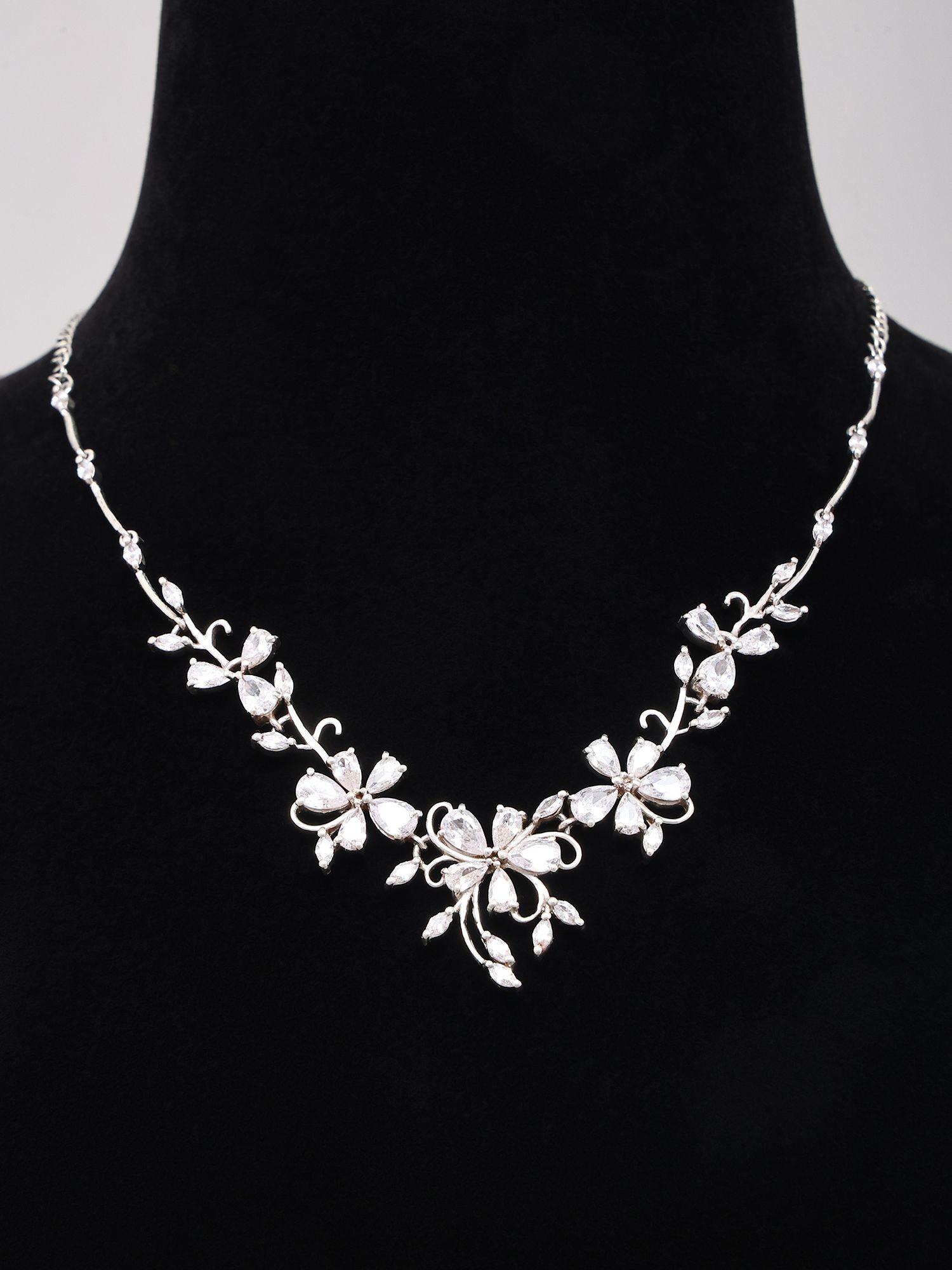 Delicate sterling silver necklace adorned with intricate floral motifs.