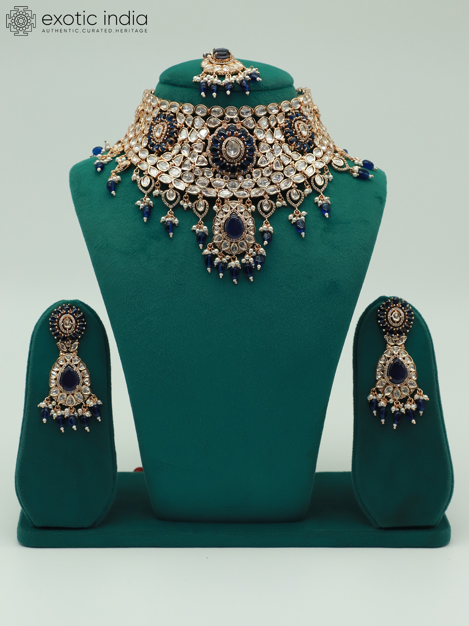 Necklace : 4.7 Inch Height Earrings - 3.7 Inch Height X 1.15 Inch Width Mangtika -6.25 Inch Length