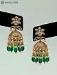 The accompanying earrings echo the sophisticated style of the necklace. Their design incorporates a traditional jhumka shape, known for its bell-like silhouette. The upper part of the earrings mirrors the pattern seen on the necklace, creating a cohesive and unified look. Like the necklace, these earrings are embellished with drop beads that sway gently, adding movement and a playful touch to the overall design. Together, the earrings perfectly complement the necklace, creating a complete and harmonious set.
