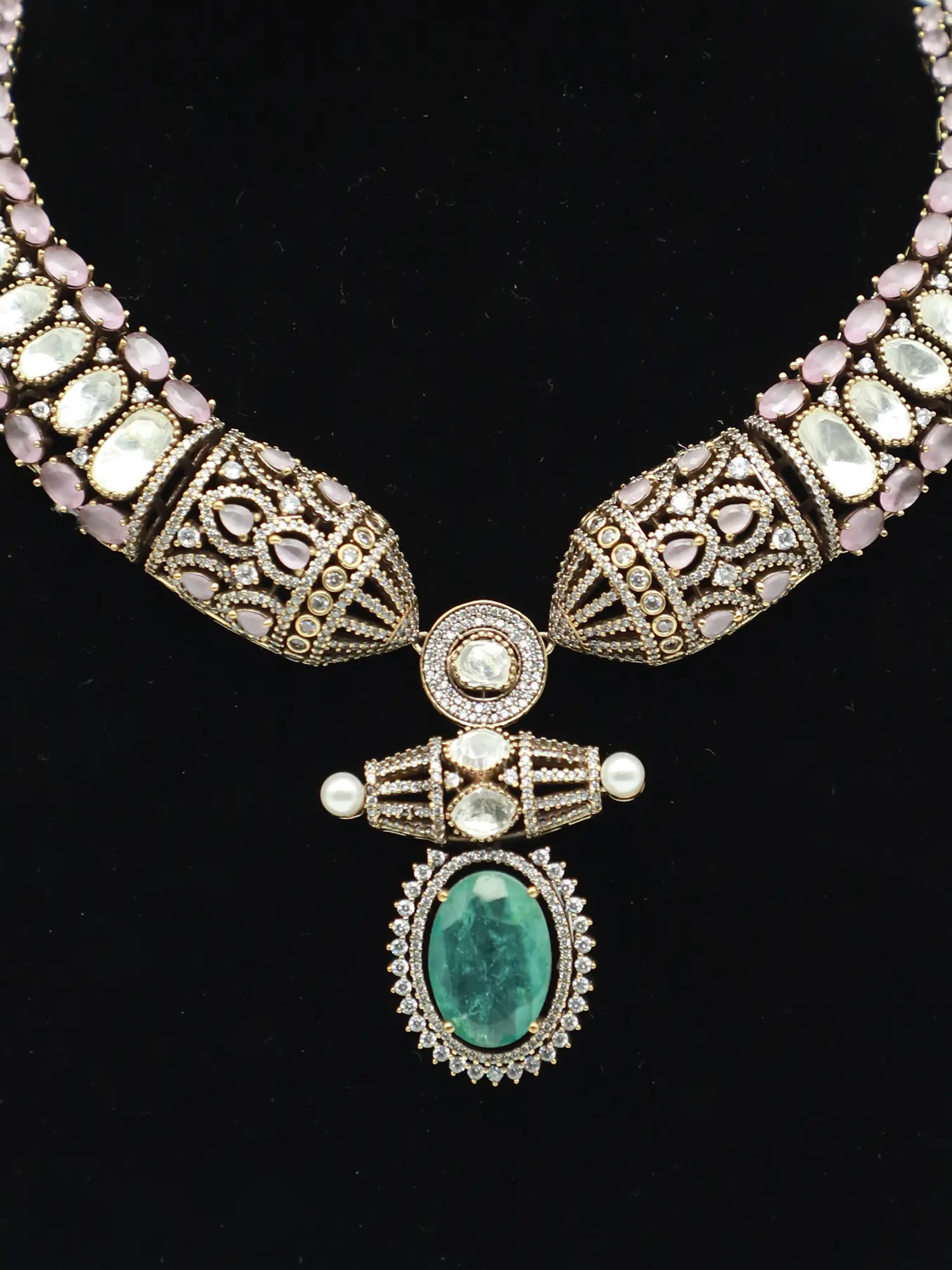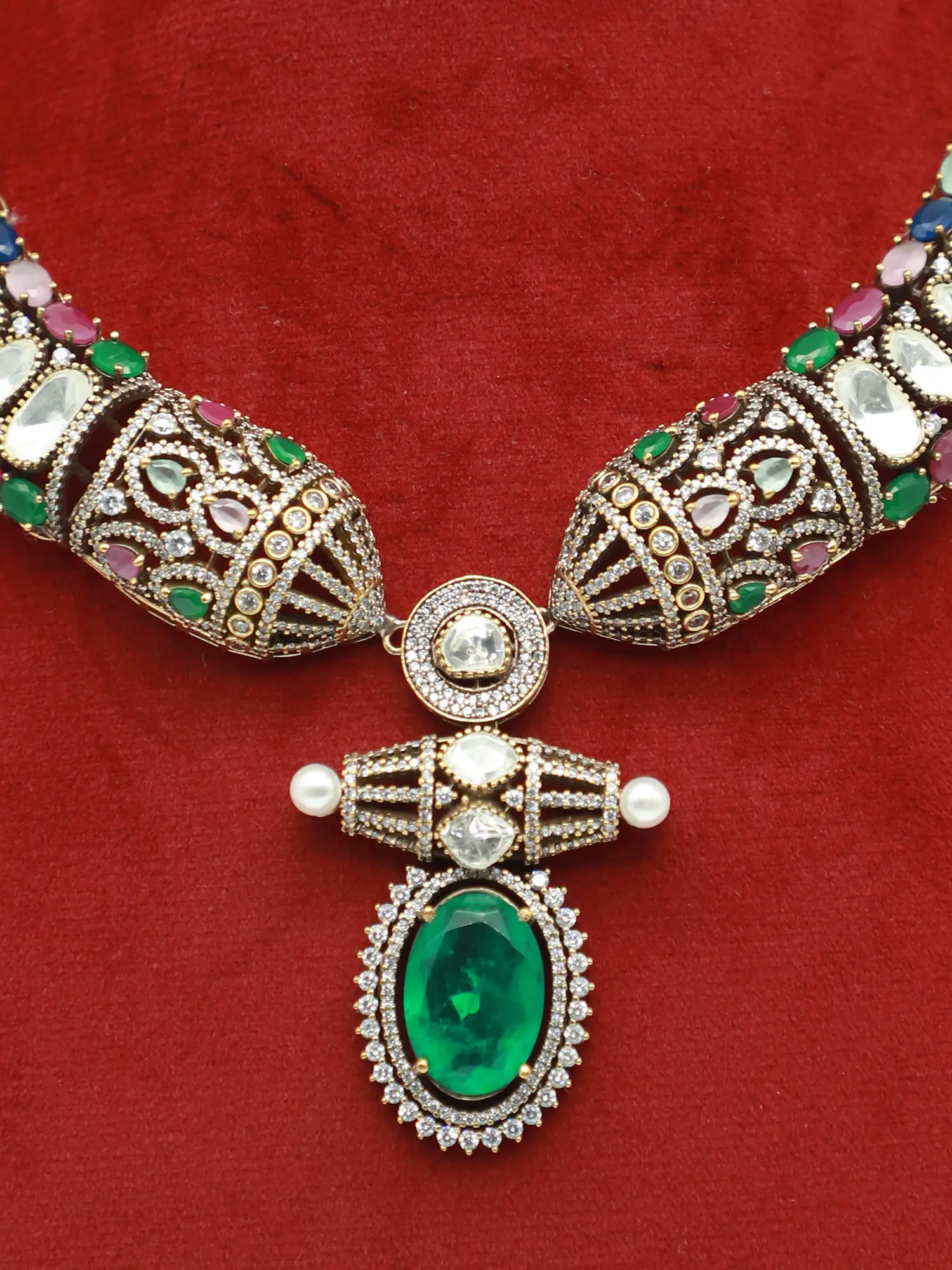 Padmavati Multi Stone Studded Choker Necklace Set | with Earrings