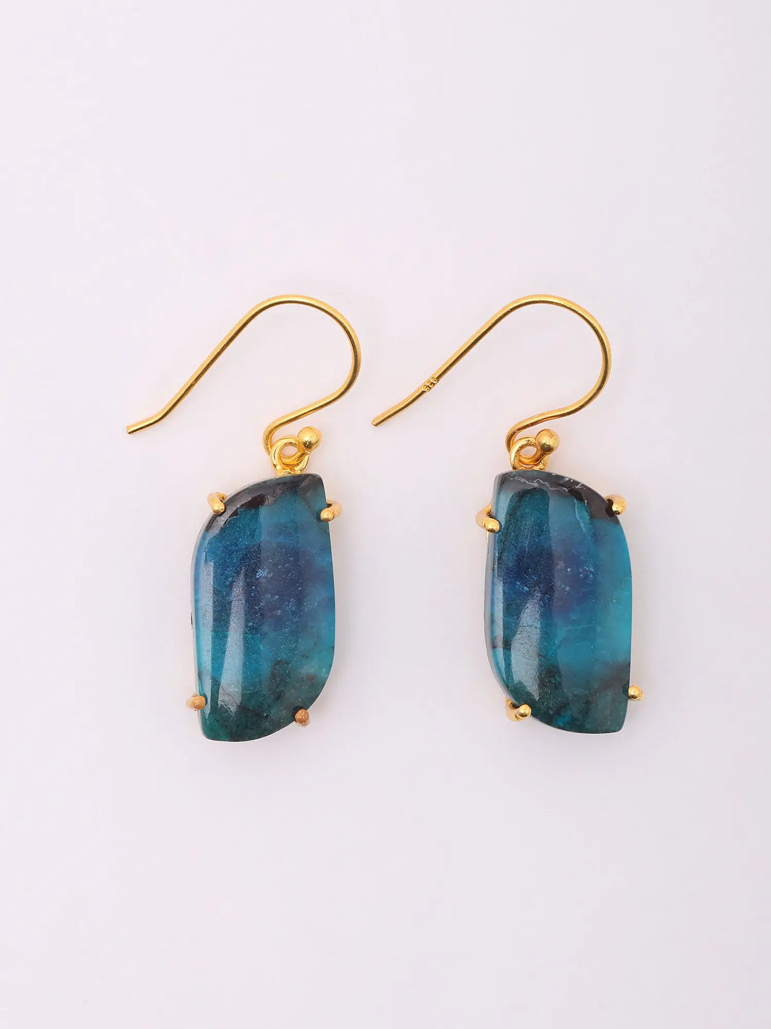 Rectangular Shape Tibetan Copper Turquoise Hook Earrings