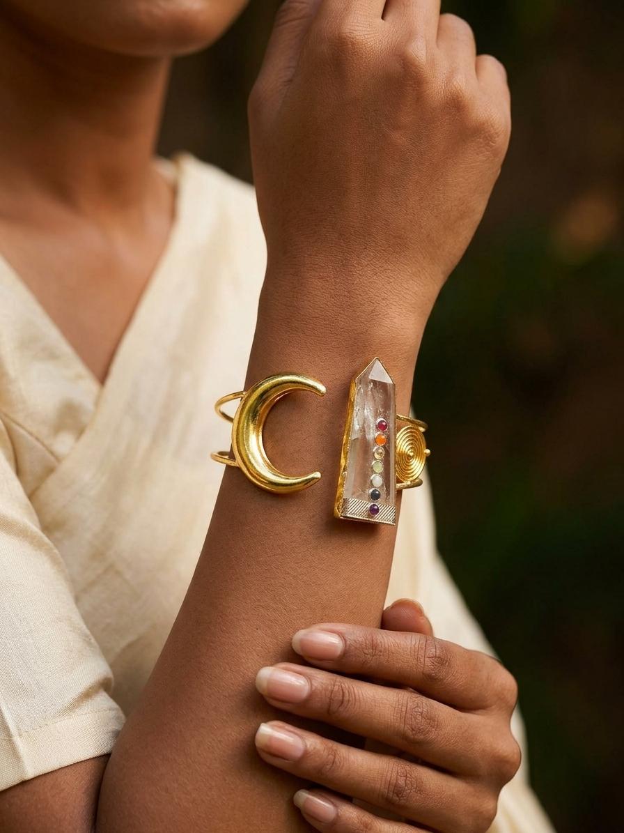 Celestial Elegance: A Lunar and Crystal Statement Cuff