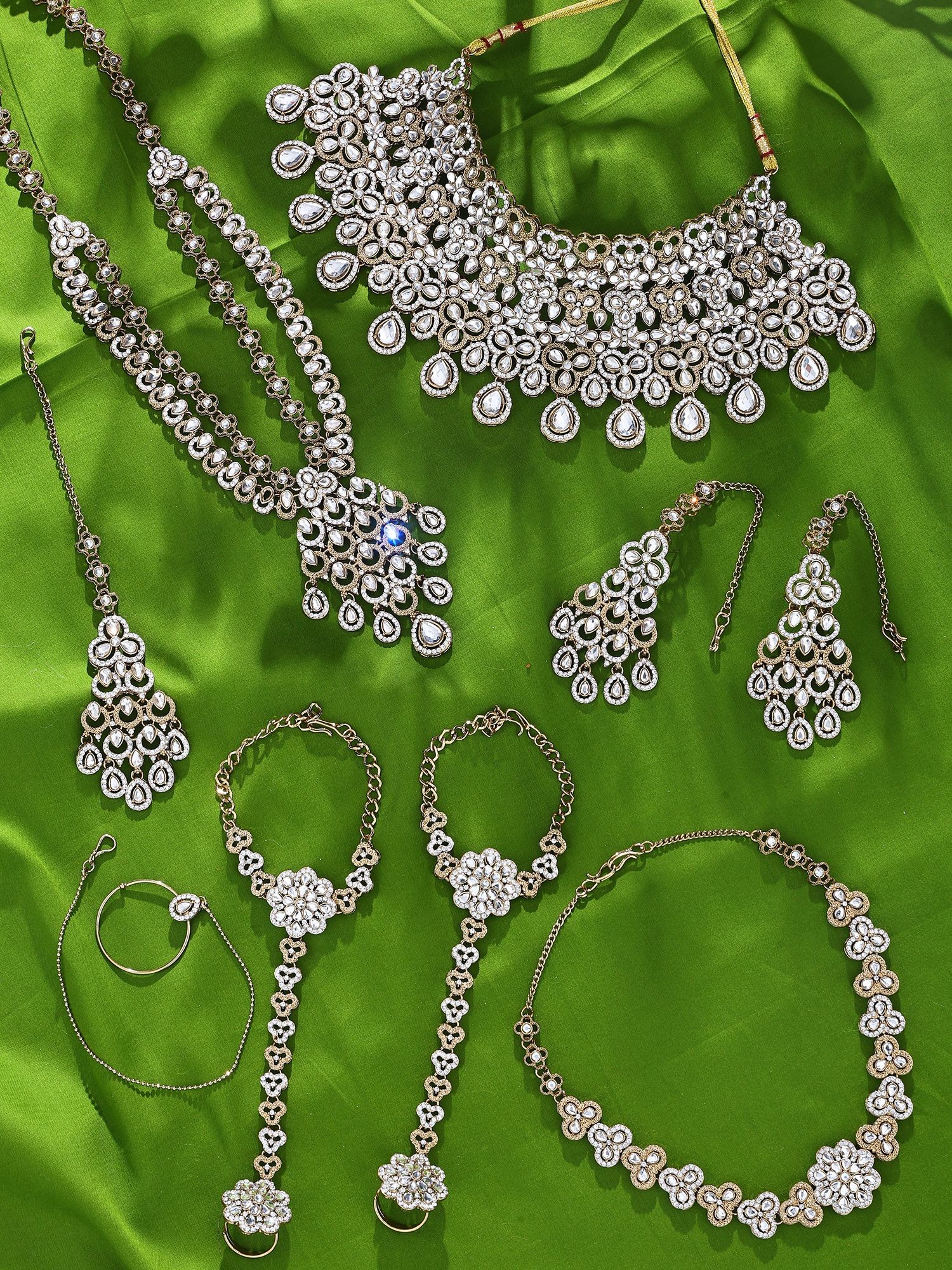 Complete Bridal Jewelry Set: Rani Haar, Haathphool, Nosering, Seesh Patti