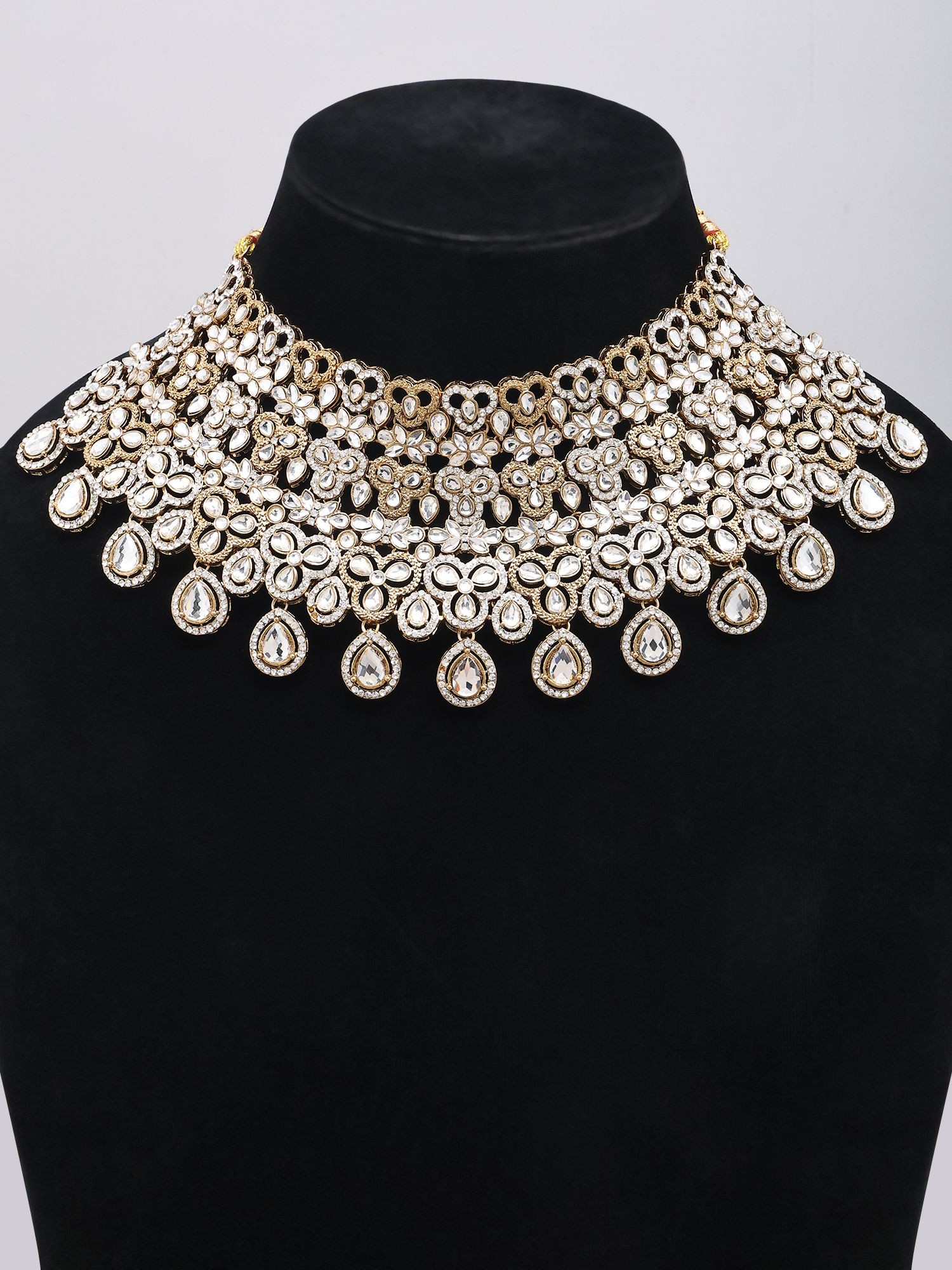 Teardrop Kundan Bridal Choker Set with Chaand Bali and Maang Tikka