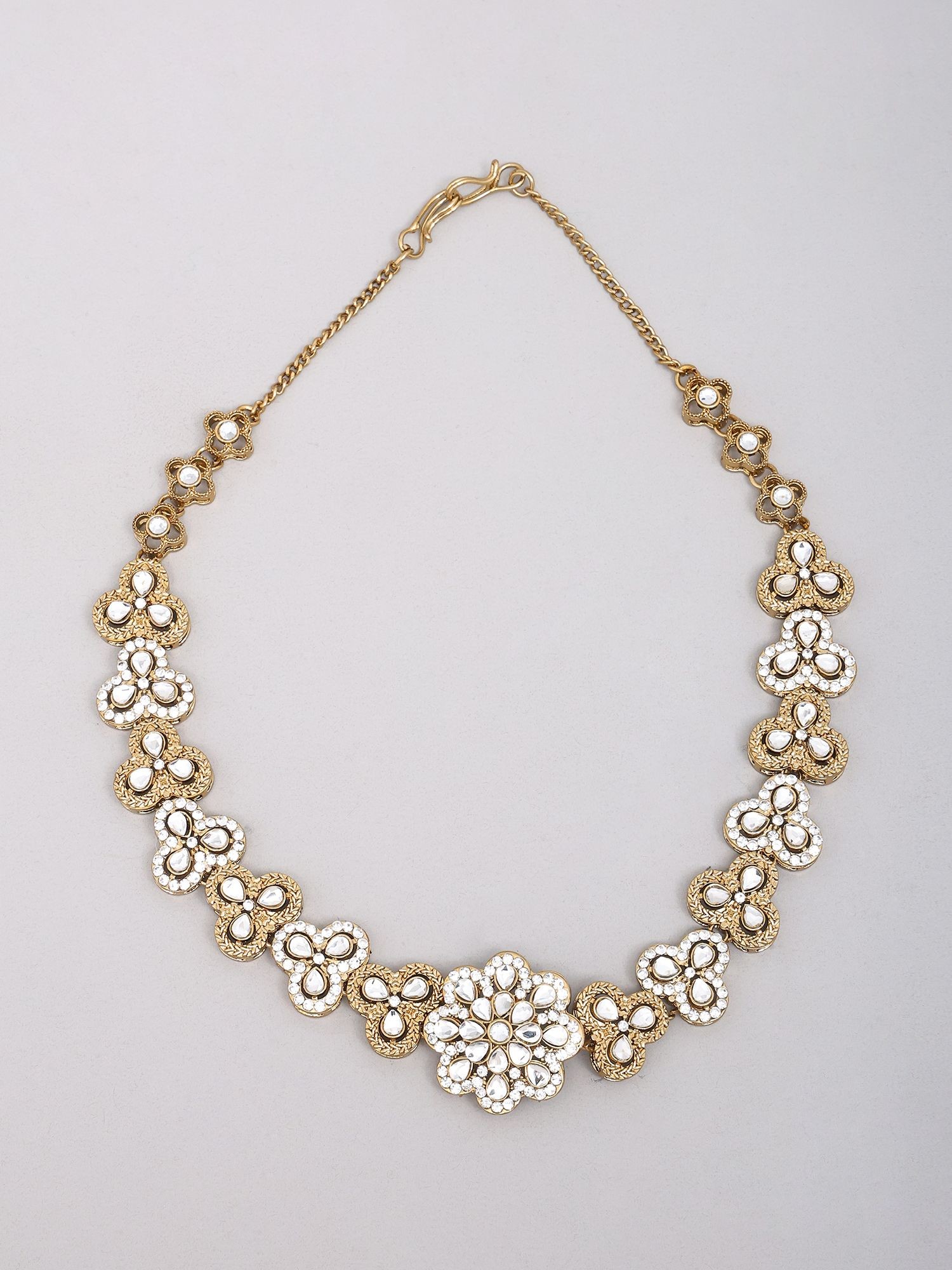 Polki Studded Semi Bridal Choker Set with Matching Earrings and Maang Tikka