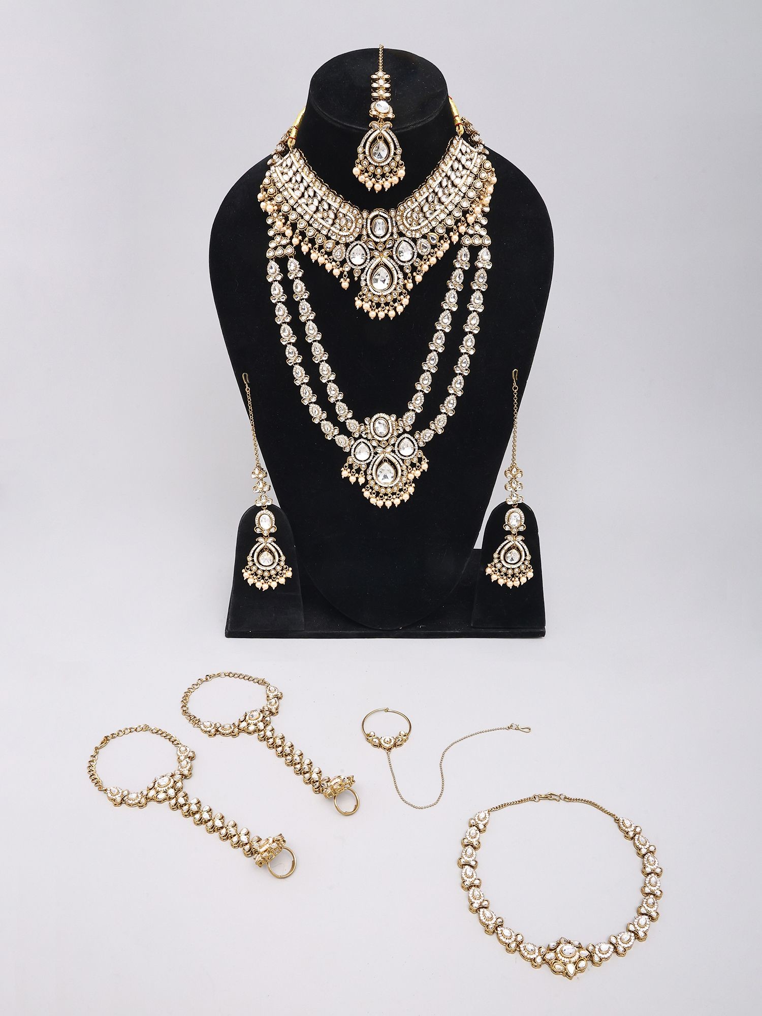 Complete Bridal Jewelry Set: Rani Haar, Haathphool, Nosering, Seesh Patti