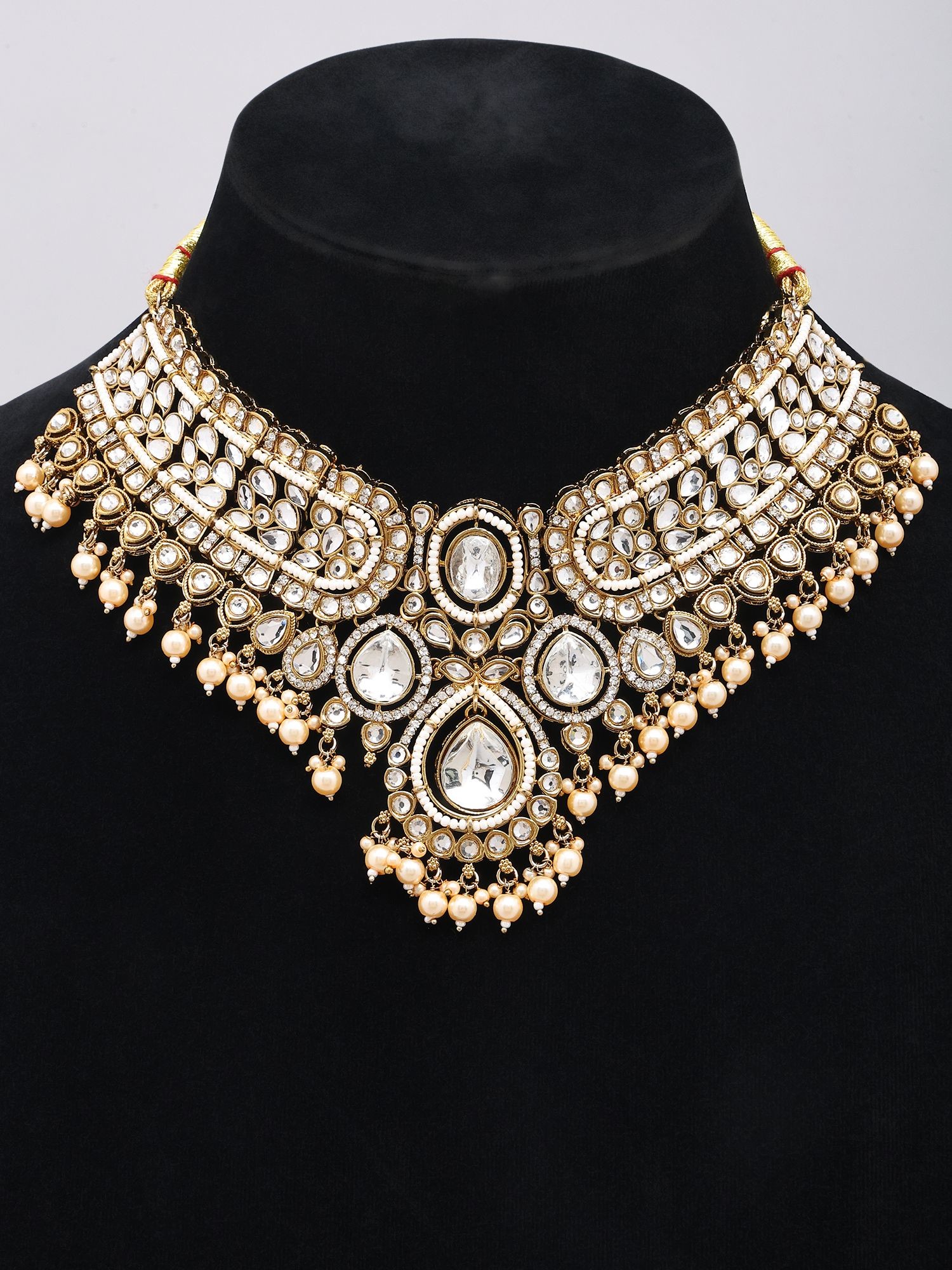 Teardrop Kundan Bridal Choker Set with Chaand Bali and Maang Tikka