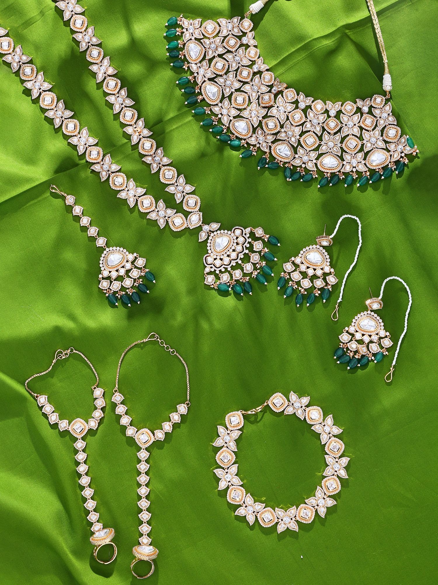 Bridal Choker Set: Green Kundan with Teardrop Maang Tikka