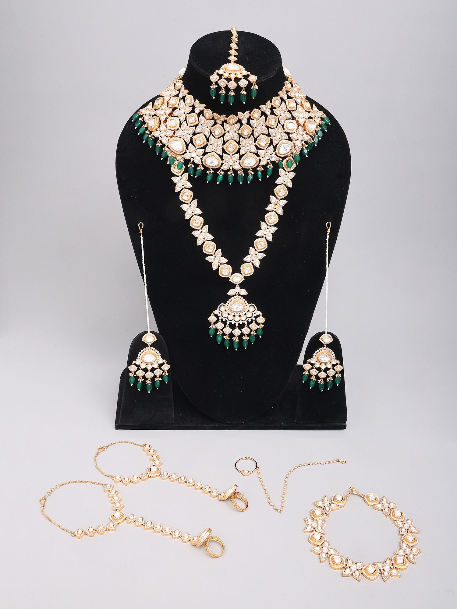 Complete Bridal Jewelry Set: Rani Haar, Haathphool, Nosering, Seesh Patti