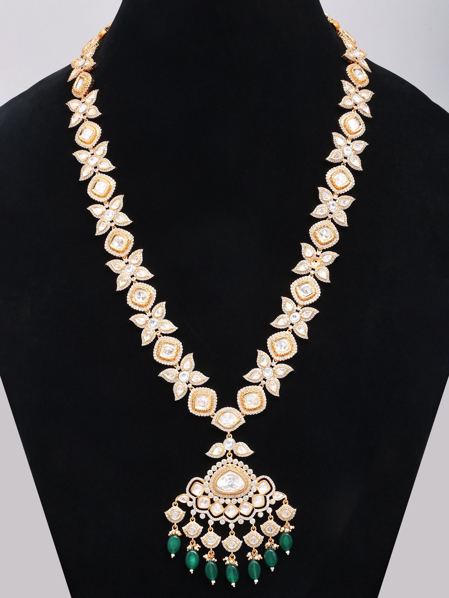 Green Kundan Stone Studded Bridal Wedding Set with Pearl Drop