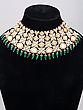 Green Polki Stone Bridal Choker Set with Earrings and Maang Tikka
