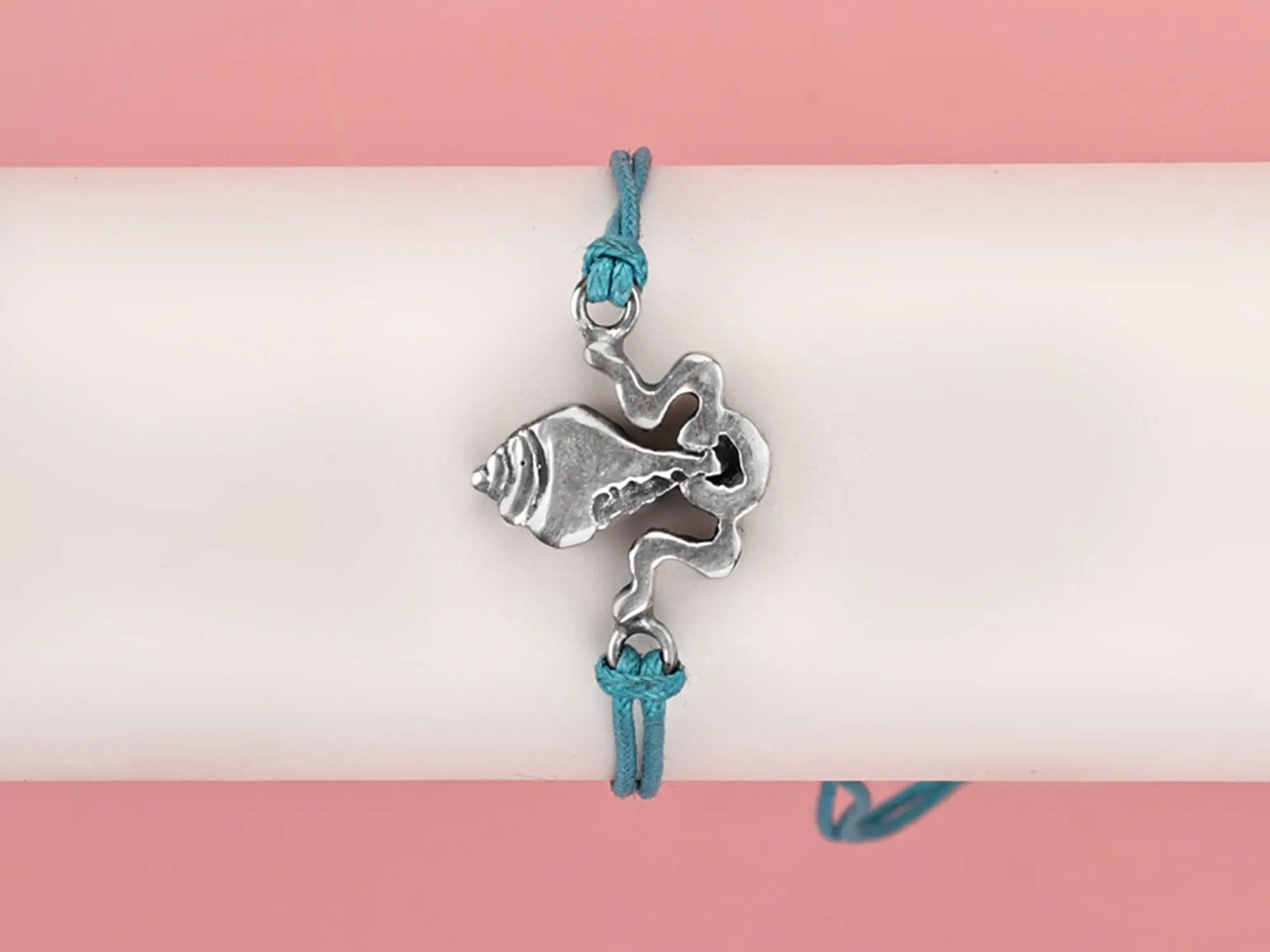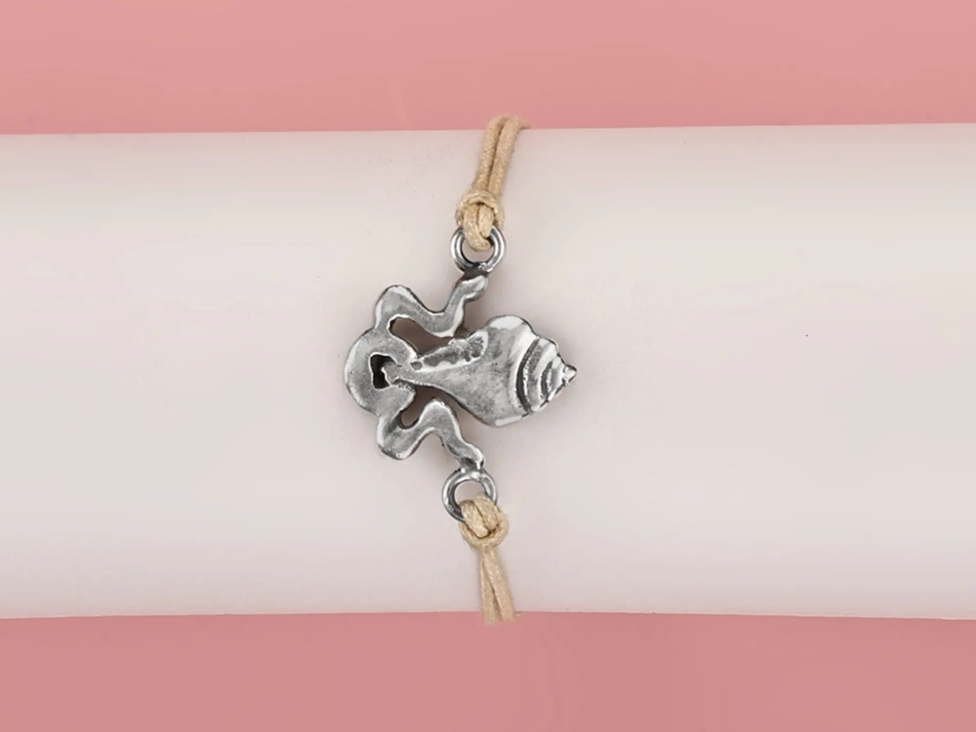 A bracelet adorned with a conch symbol indicating purity, spirituality, and divine energy. Its graceful curves evoke a sense of tranquility and harmony. The conch symbol carries different beliefs from different religions as it is shaped through Buddhist beliefs it serves the sovereignty and emblem of the fearless proclaimed truth of the dharma.