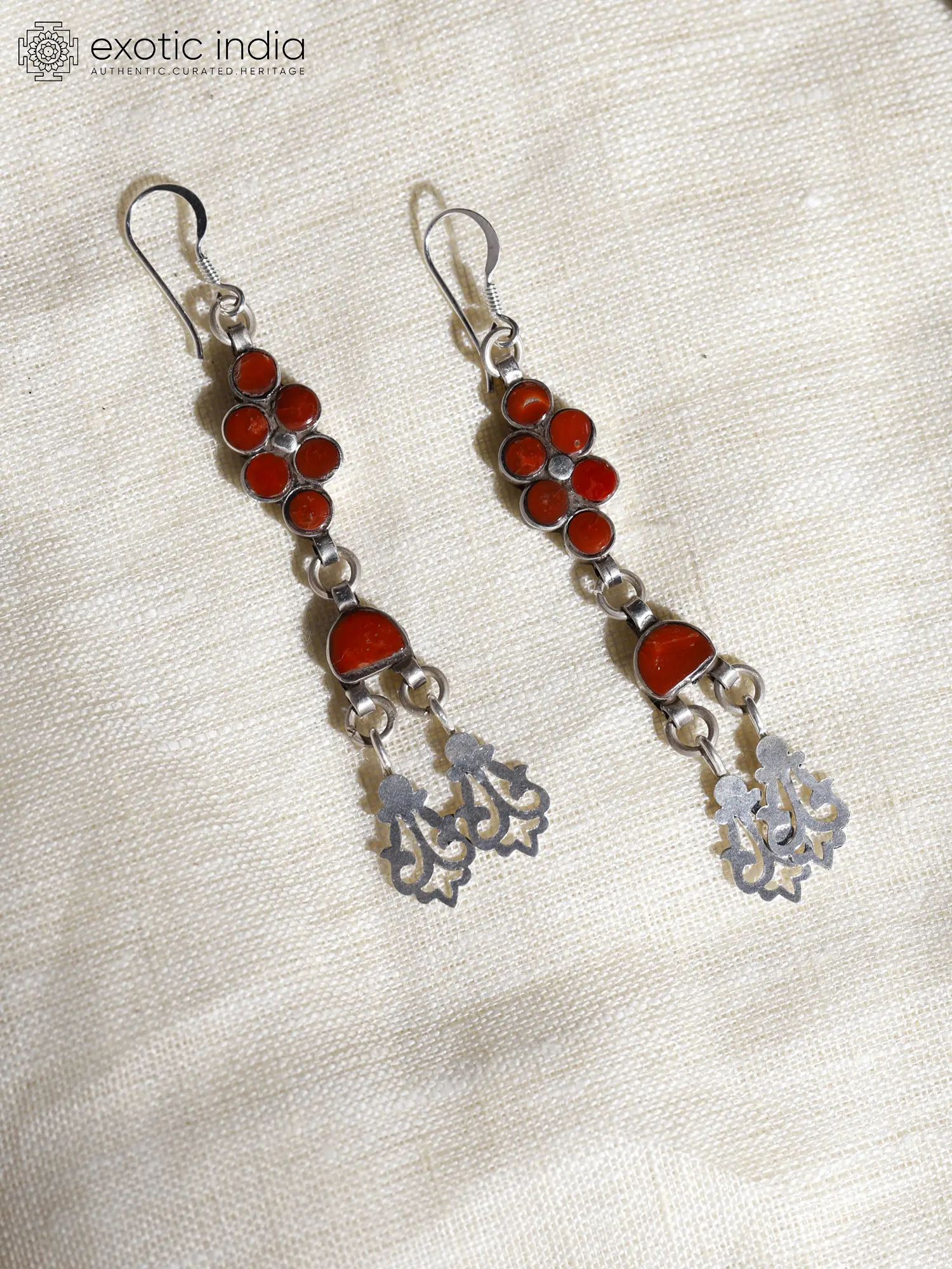 A choice of ancient kings and queens, corals have always been a fashionable stone. These dangle earrings carry an antique charm, elevated by the coral pieces set in sterling silver, a modern metal with a vintage appeal.