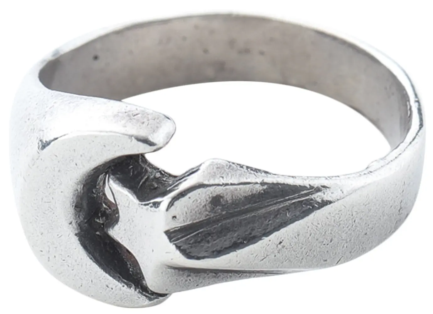 The ring is carefully crafted, featuring a detailed crescent moon embracing a radiant star. The design is both timeless and modern, making it a versatile addition to any jewelry collection. It’s designed to be comfortable for everyday wear. It is perfect for those who appreciate unique and meaningful accessories. This is a ring designed to be cherished.