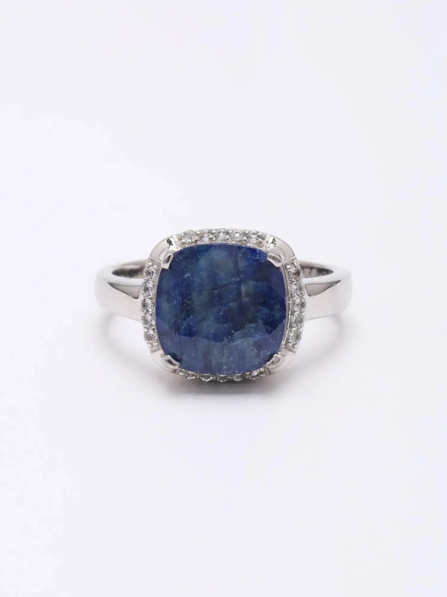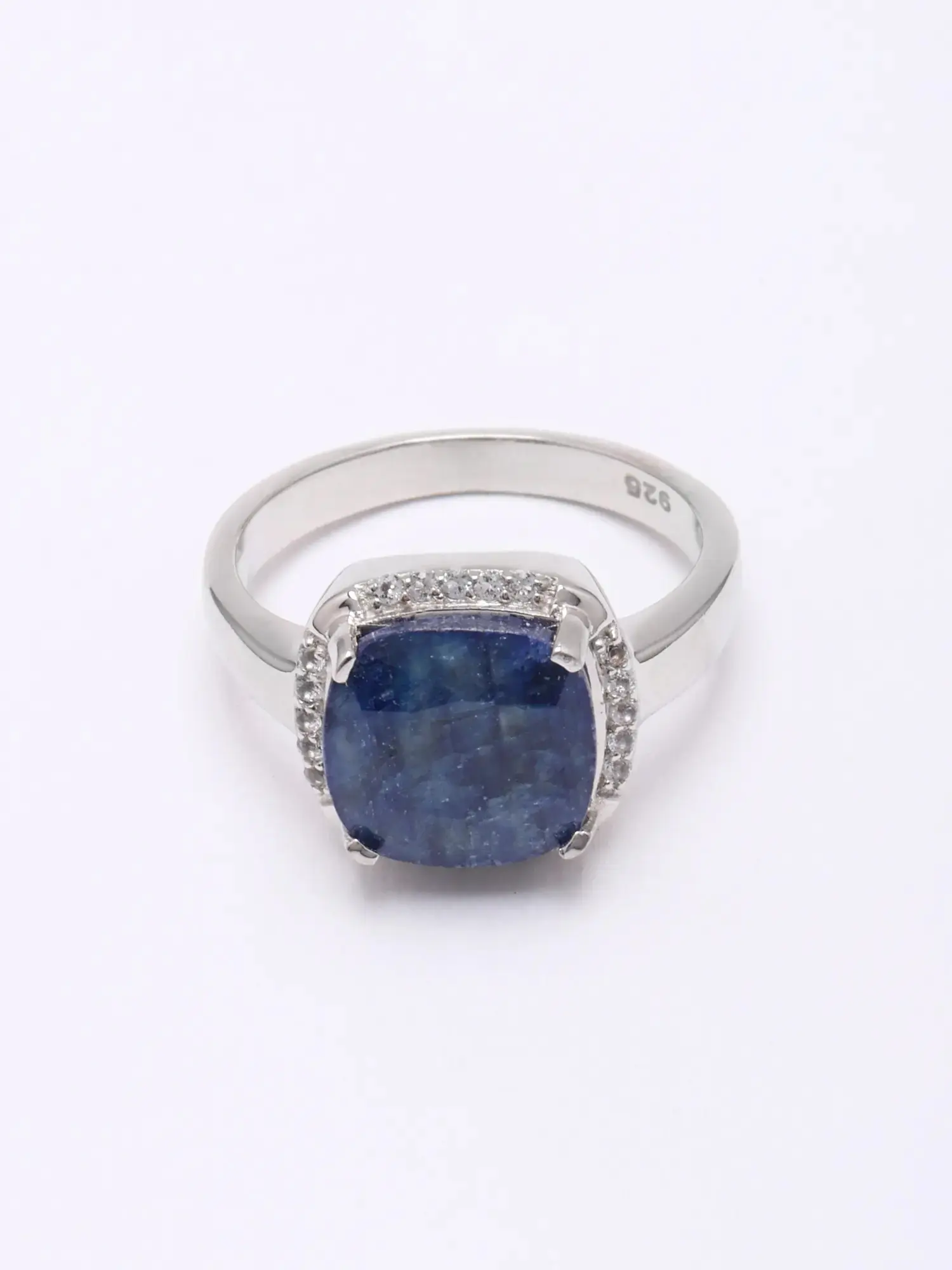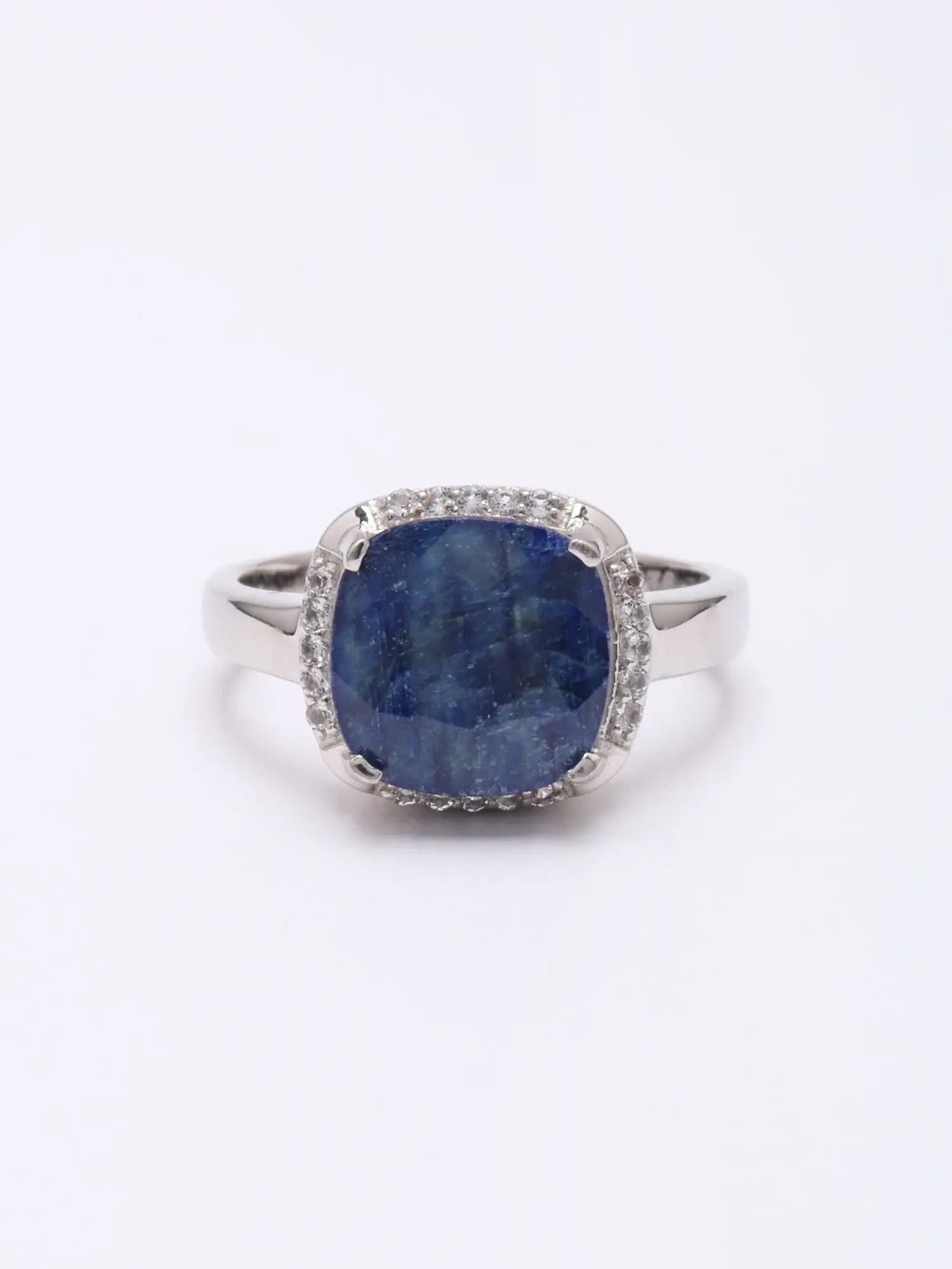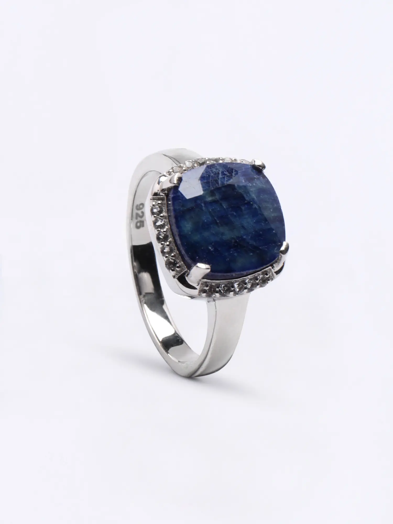 Designer Sterling Silver Ring with Faceted Blue Sapphire
