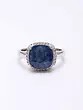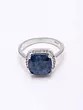 Sterling Silver Ring with Oval Shape Faceted Blue Sapphire Ring