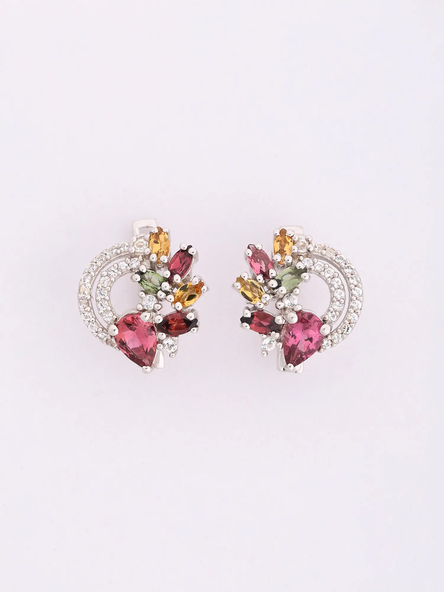 Multicoloured Tourmaline Sterling Silver Earrings with Gemstone Accents