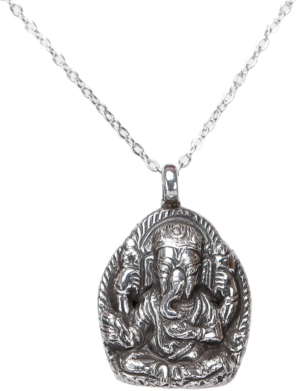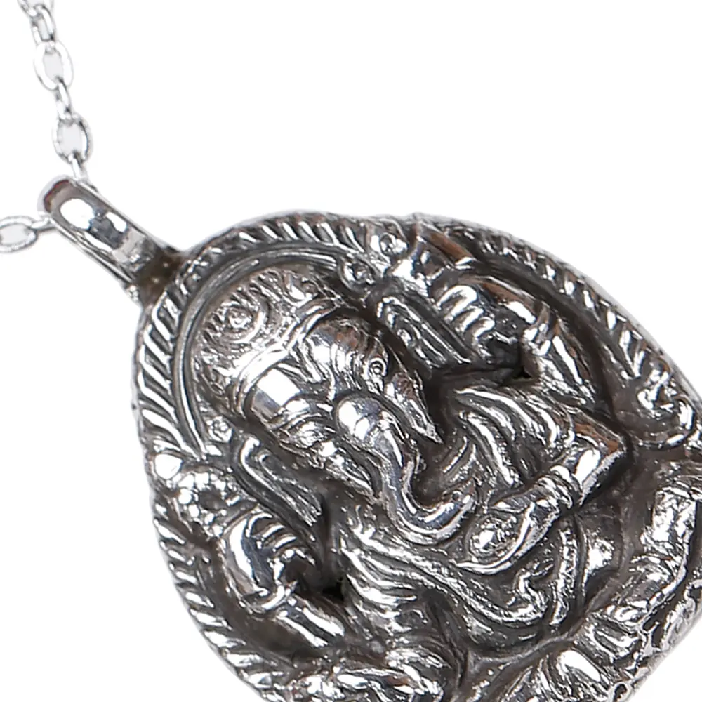 Embrace the divine elegance with the Lord Ganesha pendant from Nepal made with sterling silver. This pendant is inspired by Nepali craftsmanship and showcases the intricate detailing and revered depiction of Lord Ganesha. Embrace the unique beauty of the detailed craftsmanship, thoughtfully created to enhance your ensemble with grace and cultural authenticity.