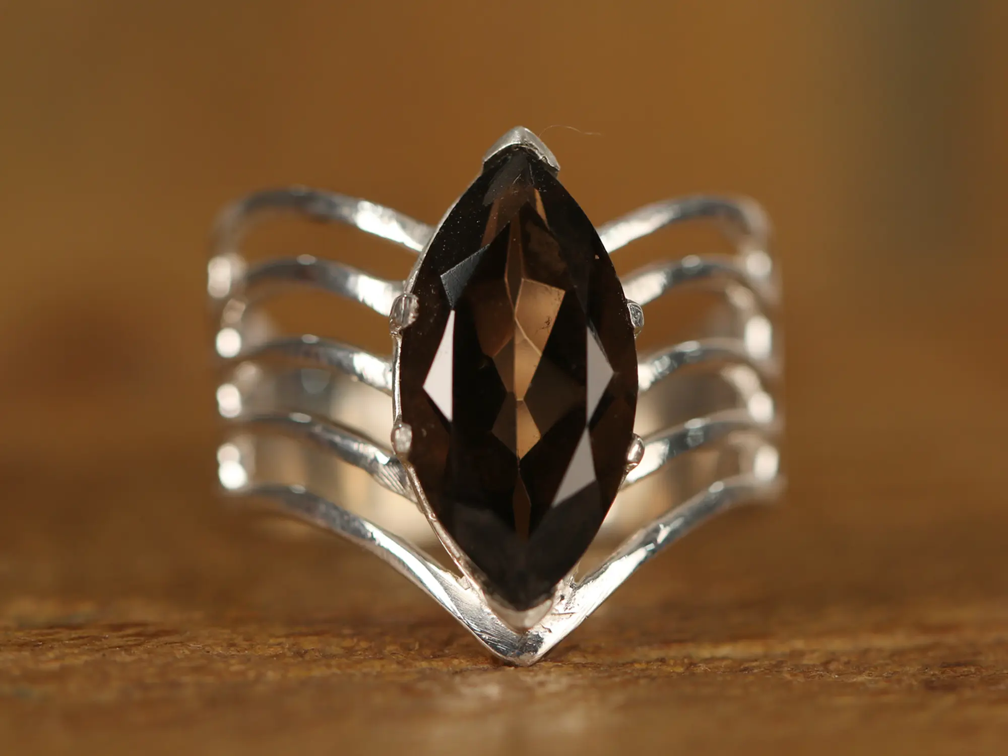 The cage design has become very popular due to its use in various forms of jewelry. It is a jaal design in the native language and looks elegant wherever used. This Designer Cage Ring with Stone is a sterling silver masterpiece that seamlessly embraces the beauty of the Jaal design. At its center, a luminous moonstone casts its ethereal glow, captivating with a serene radiance. The stone is embraced by a unique cage design, where lines of sterling silver delicately intertwine, forming an enchanting enclosure around the moonstone. This thoughtful arrangement creates a harmonious blend of celestial symbolism and contemporary chic.