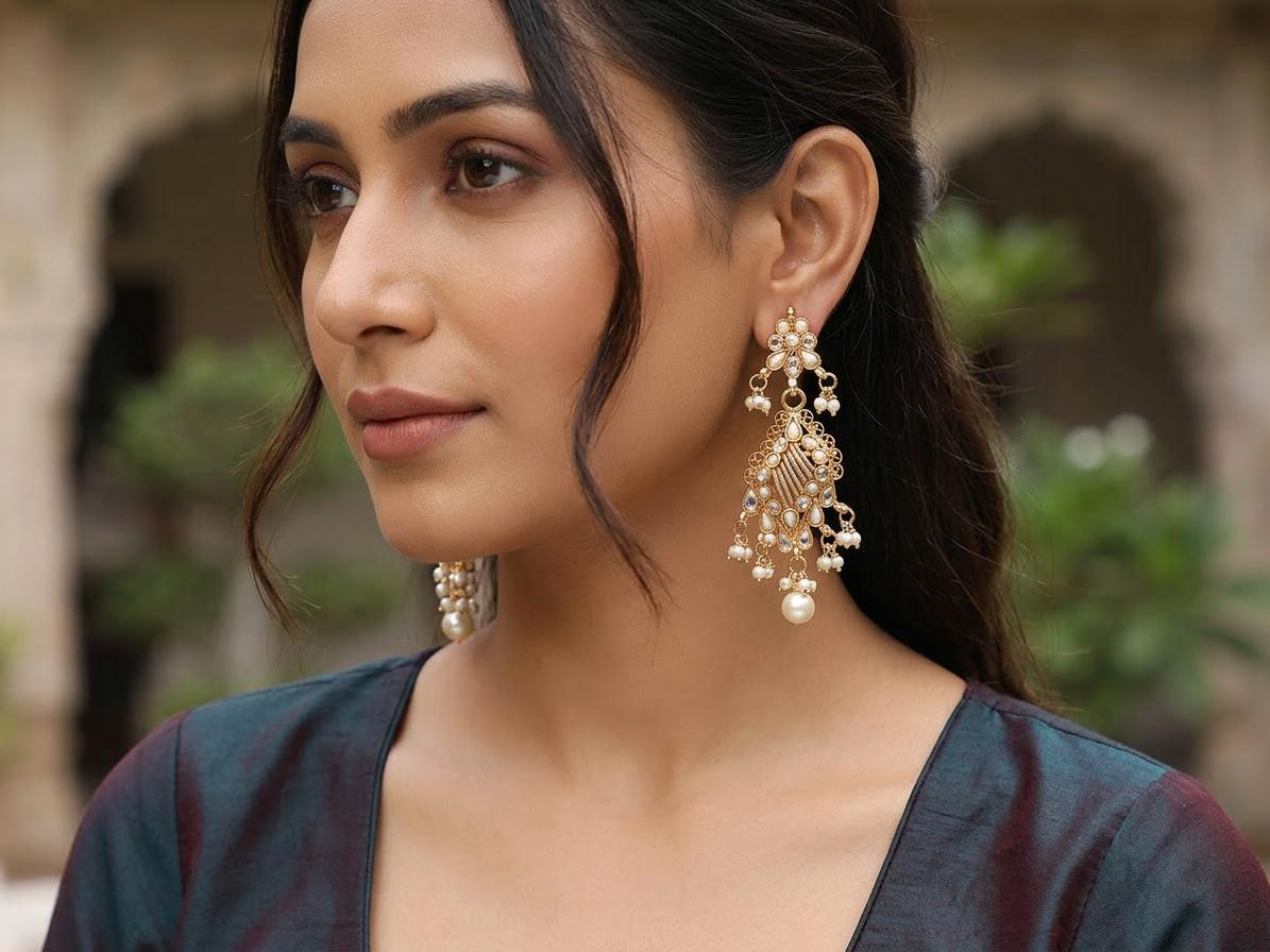 Savor the wonderful charm of designer dangle earrings, which combine refinement and grace. These exquisitely detailed earrings have a mesmerizing pattern that cascades gracefully, adding a glamorous touch to the wearer's face. Careful craftsmanship and thoughtful design make these earrings even more beautiful, which guarantees that the wearer will radiate timeless elegance and unquestionable grace. These bold accessories can simply go with any outfit, elevating your style and making an impression.