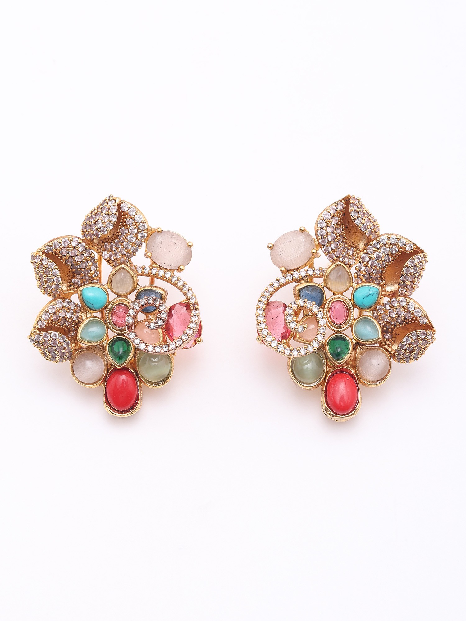 Floral Design Choker and Earrings Set with Multicolor Stones