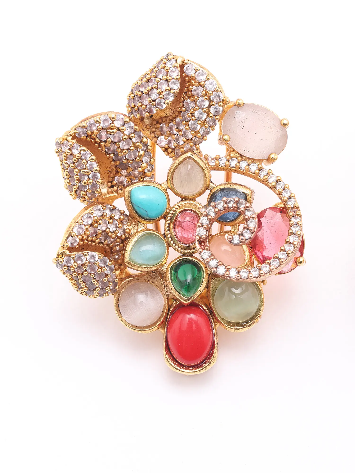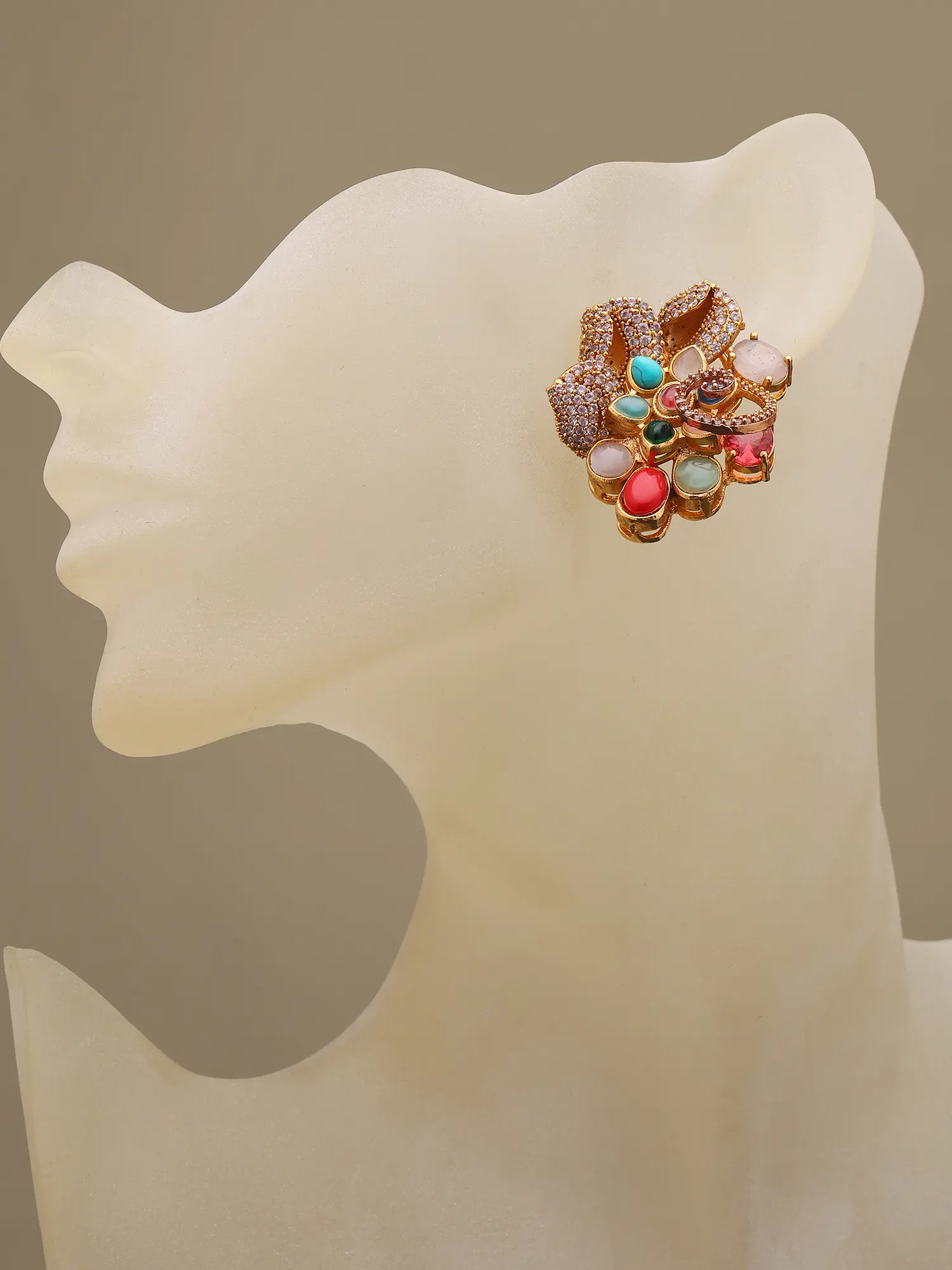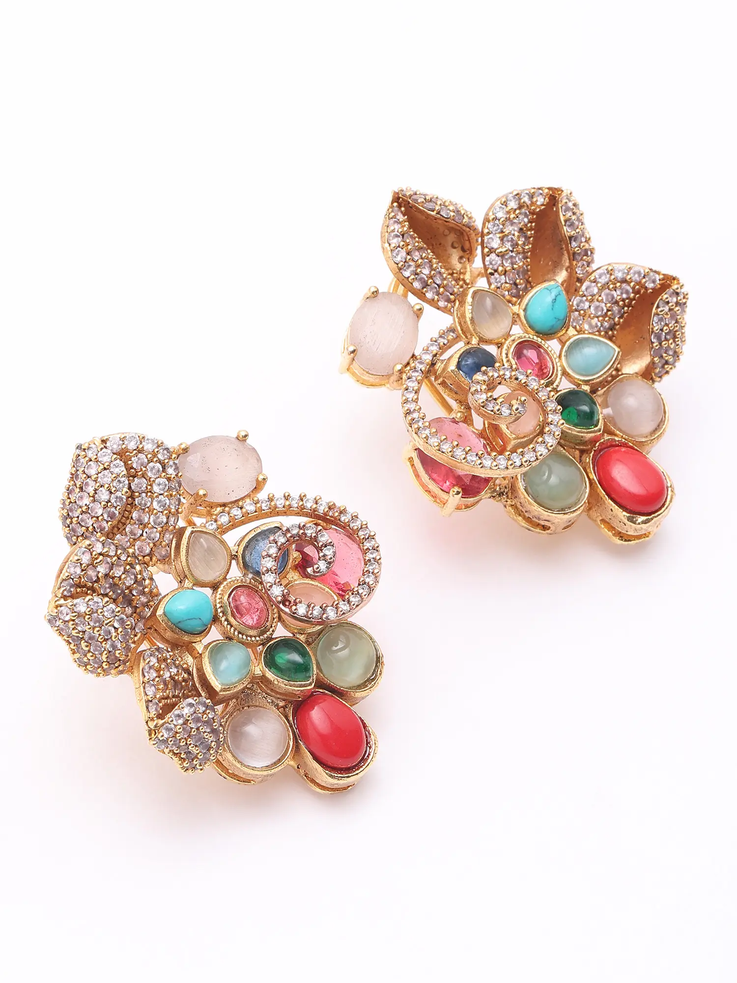 Multi Stone Studded Floral Design Necklace and Earrings Set with Five Strand