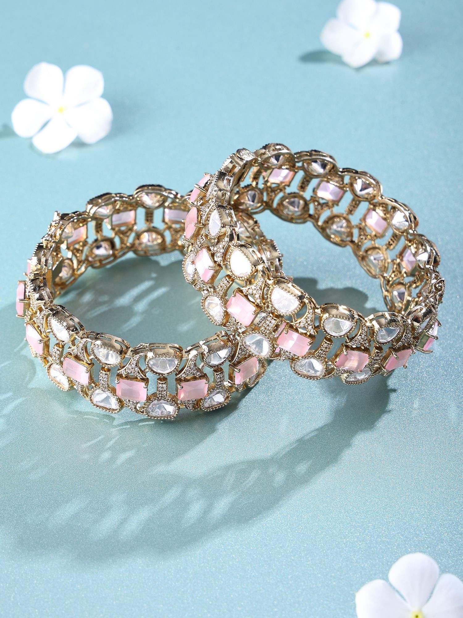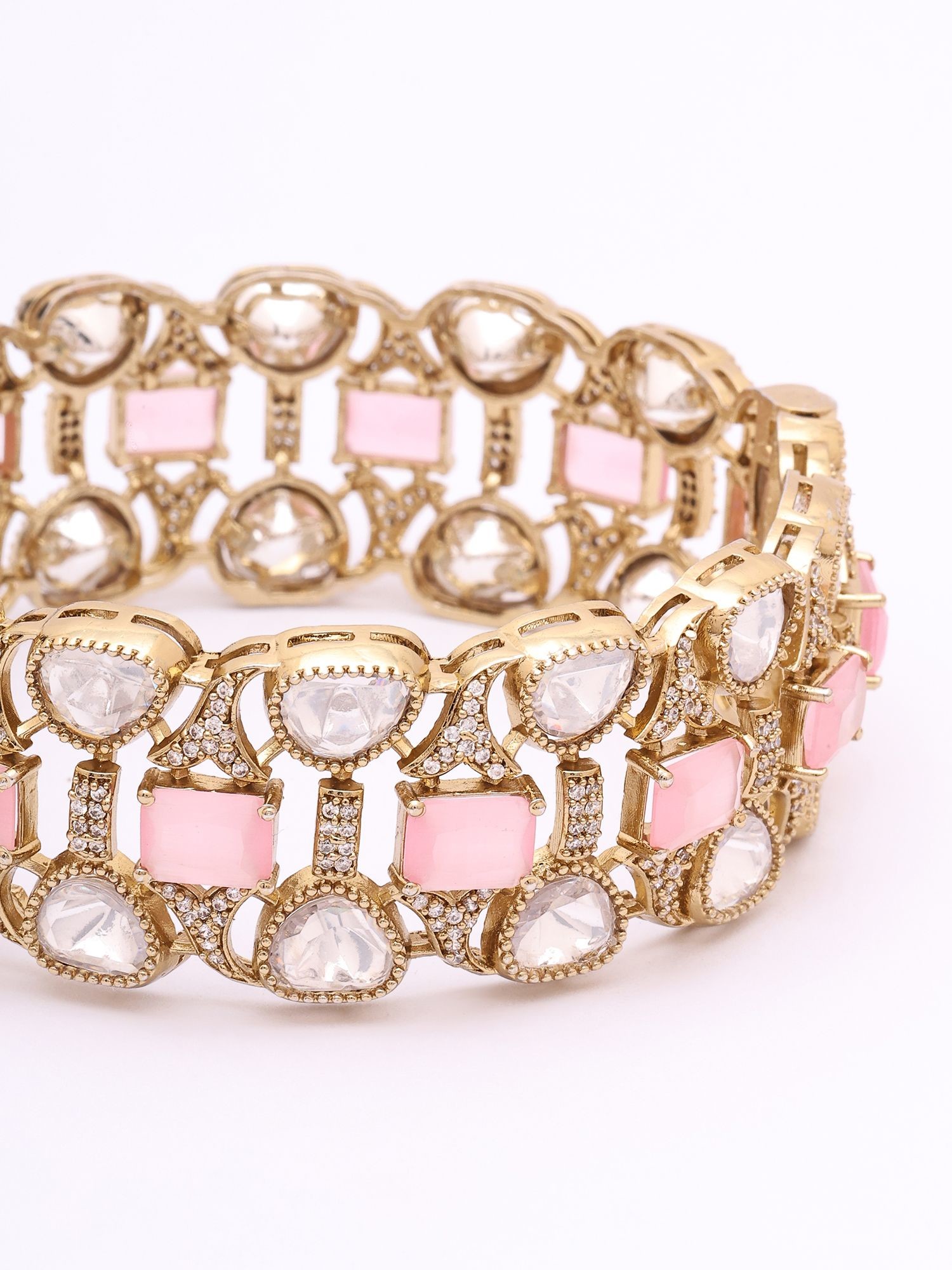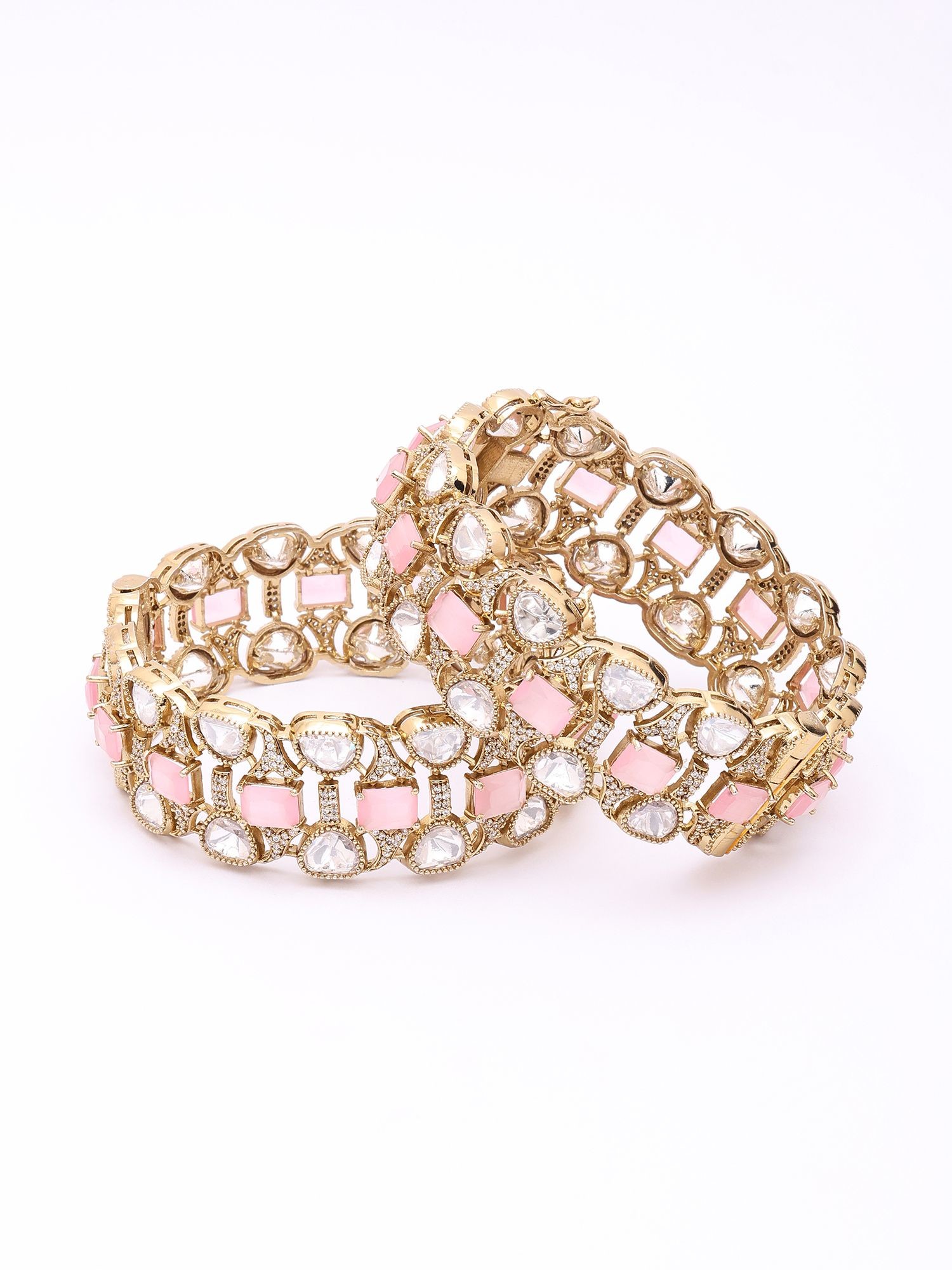 Blush Pink Stone Studded Openable Bangles with Polki Detailing (Pair)