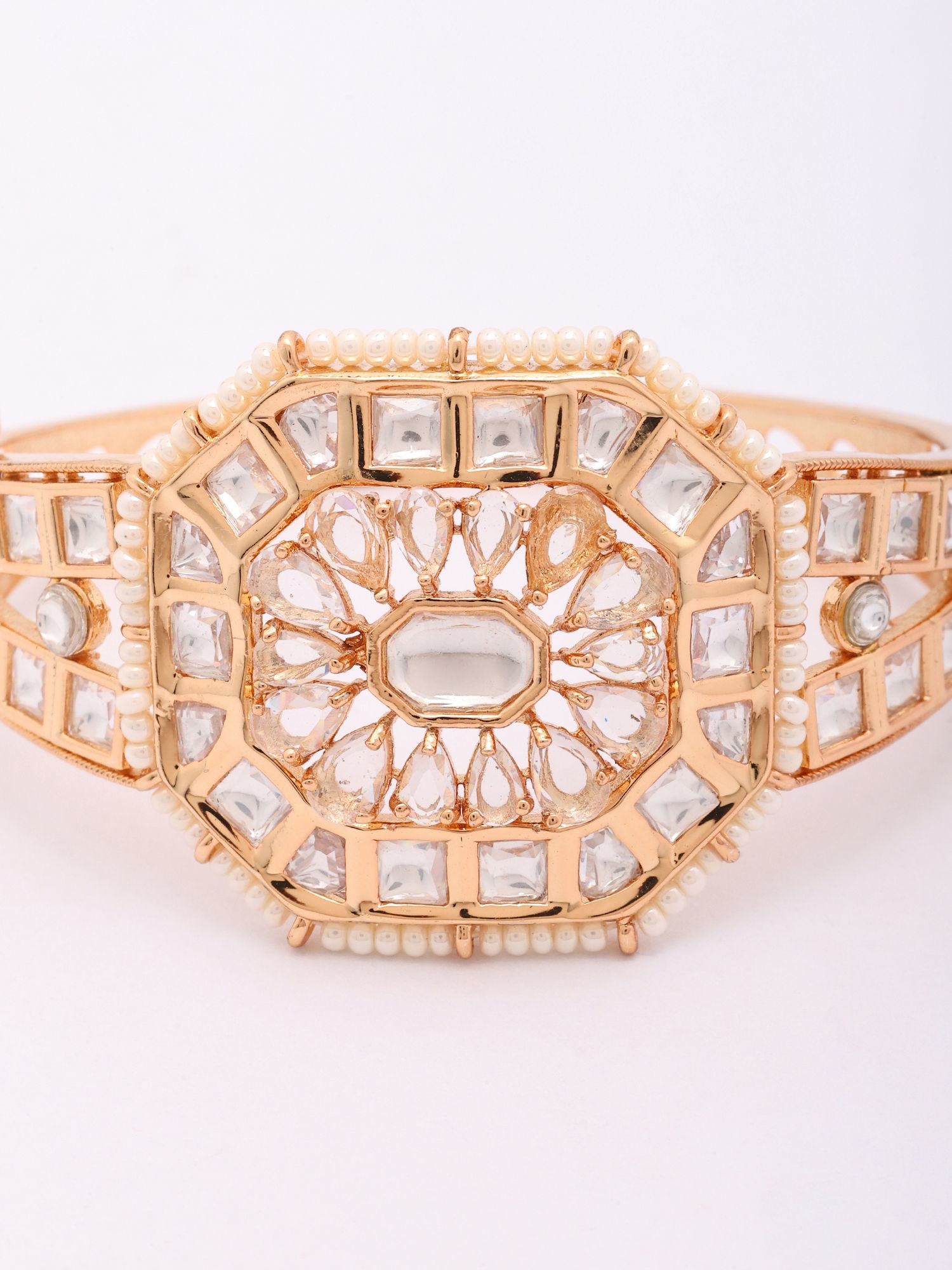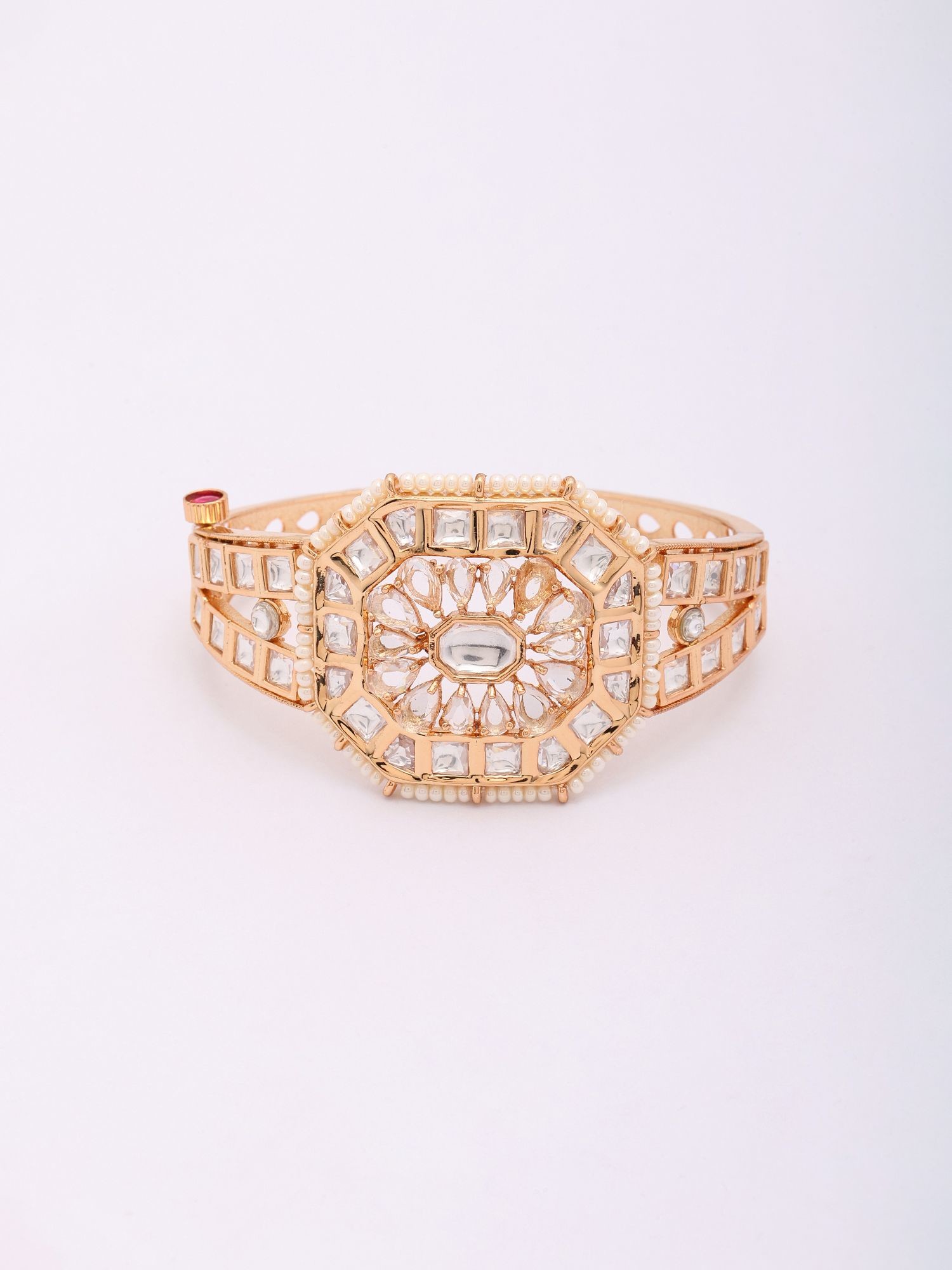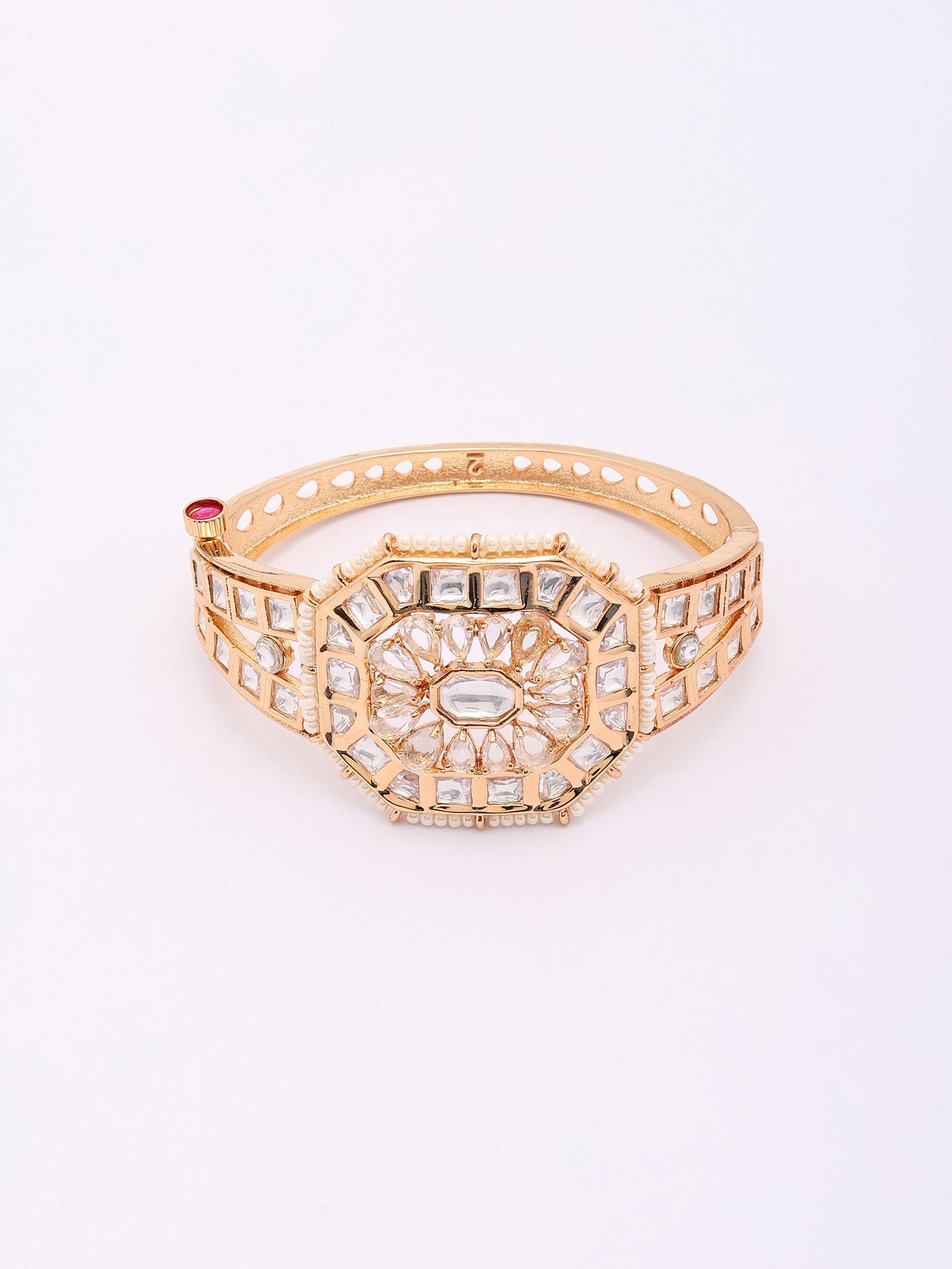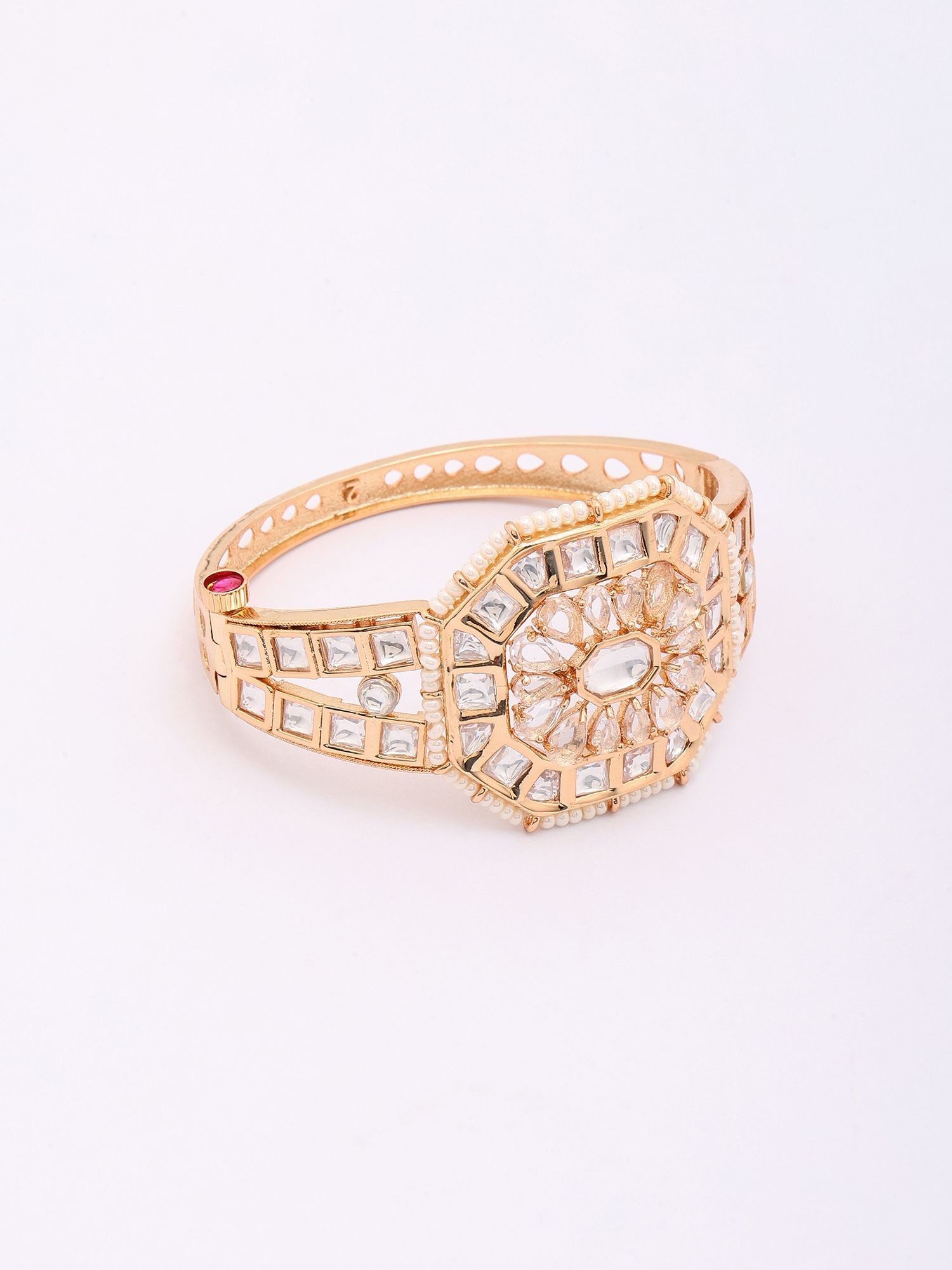 Kundan Stone Studded Openable Bangle with Beaded Edge