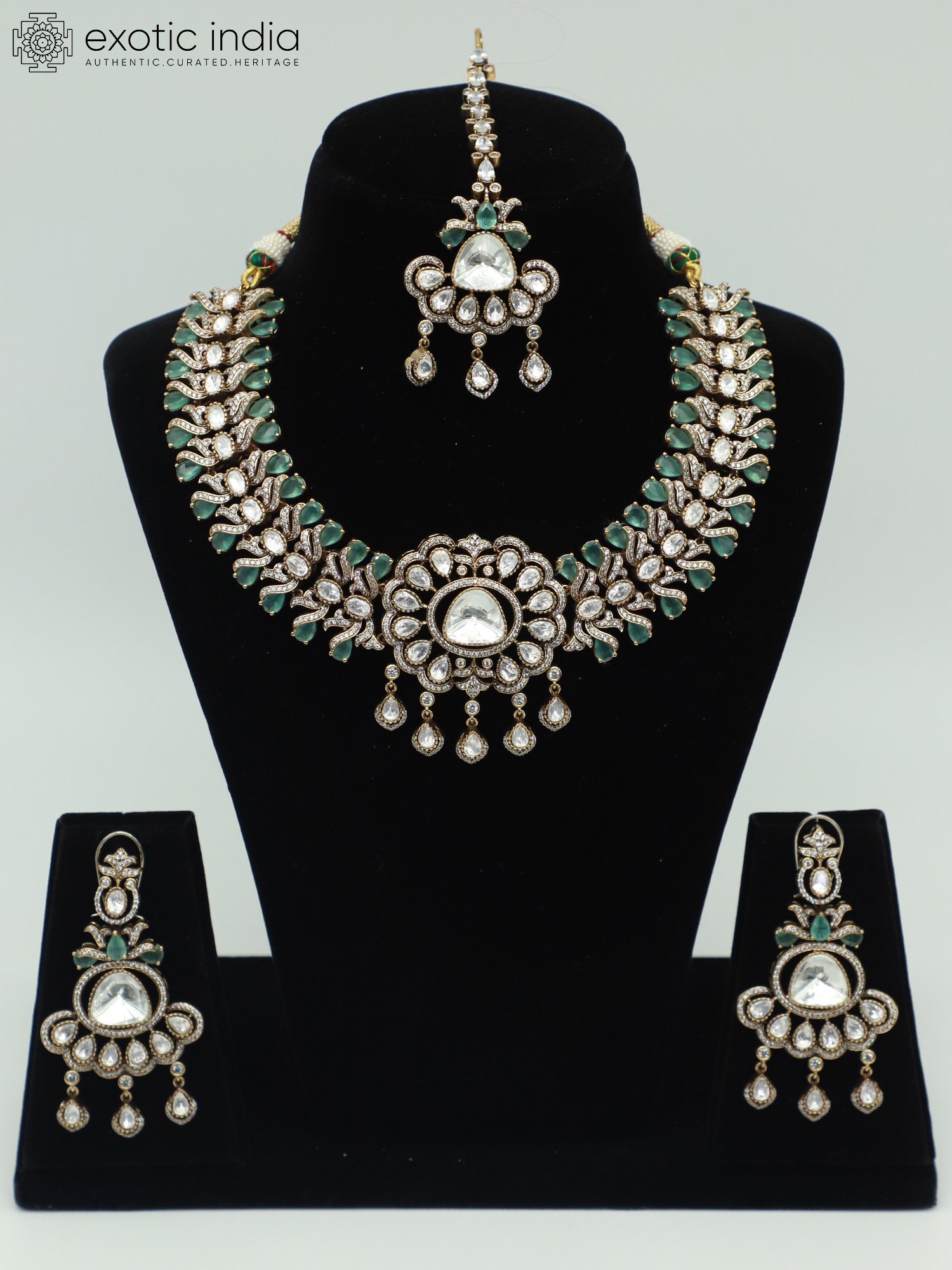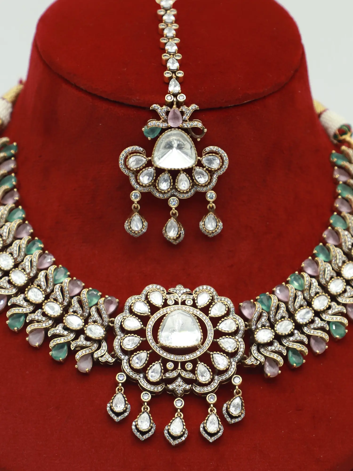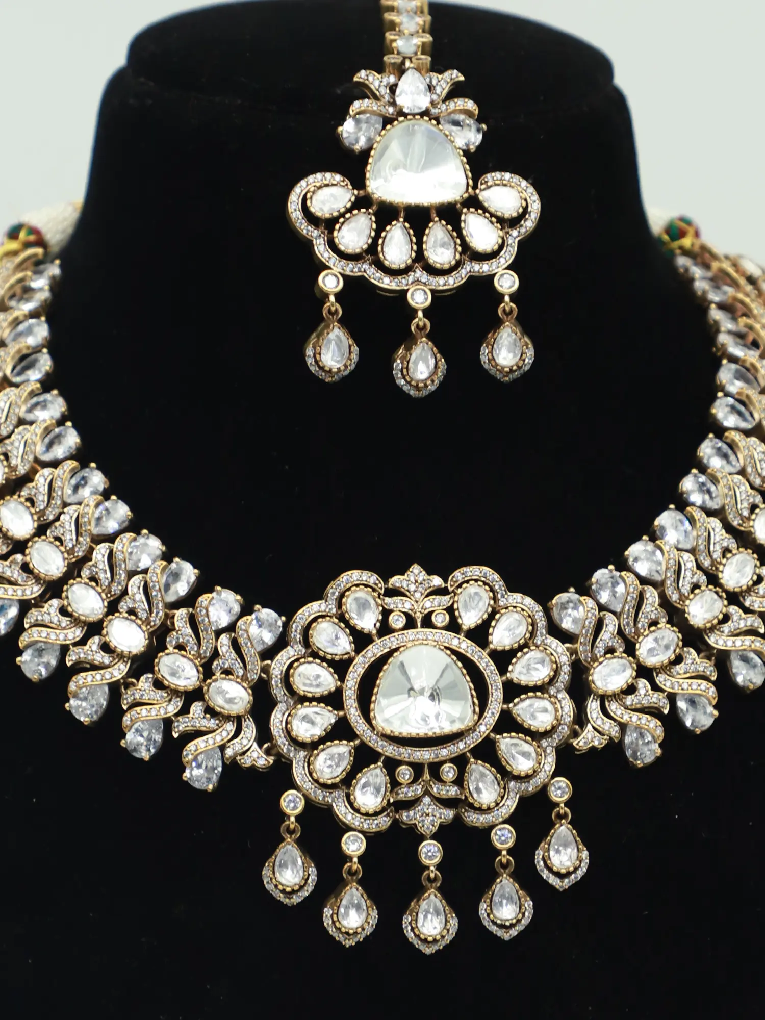 Designer Necklace & Earrings Set with Moissanite and Kundan