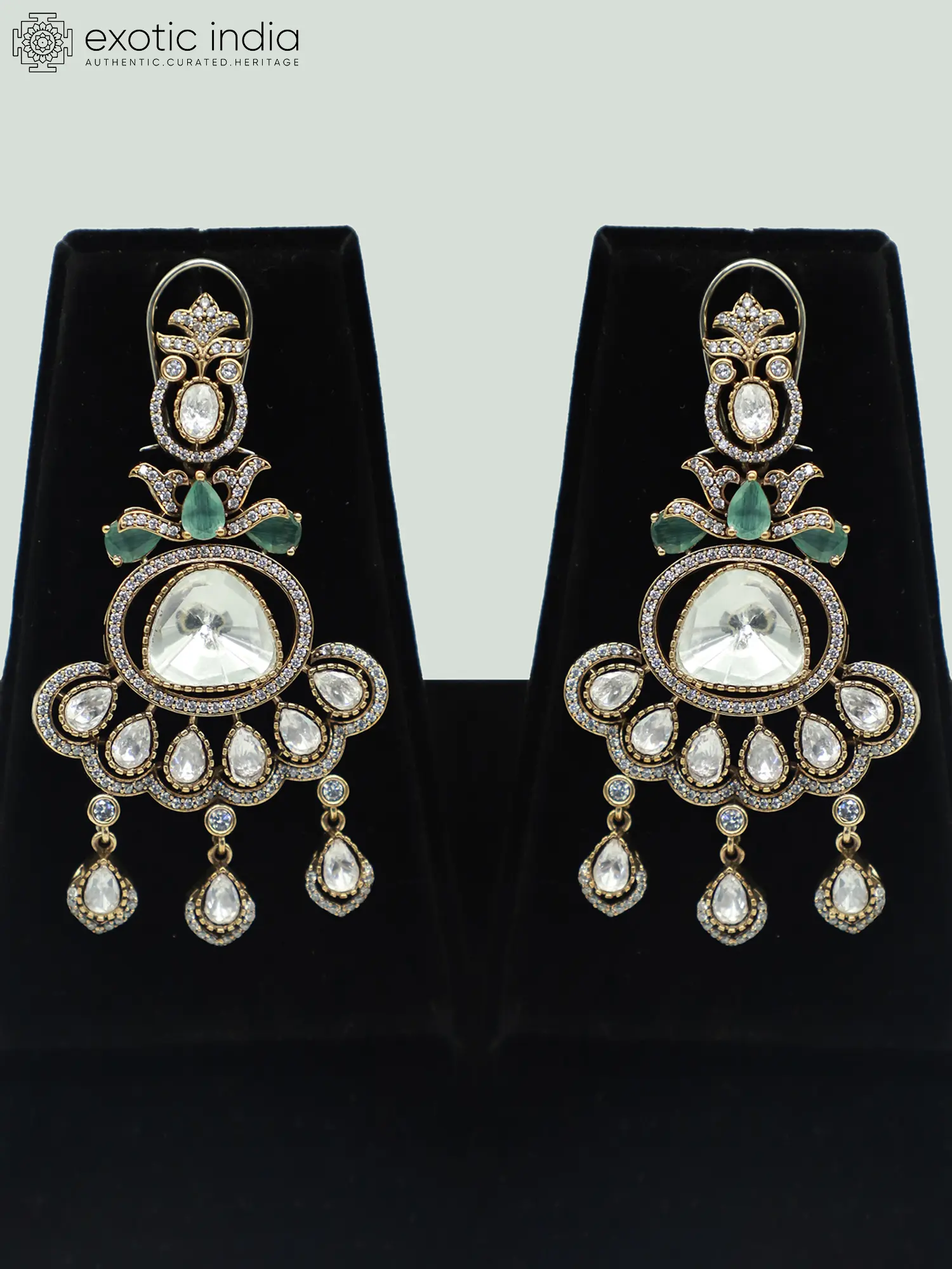 Designer Heavy Necklace Set With Moissanite Kundan And Earrings