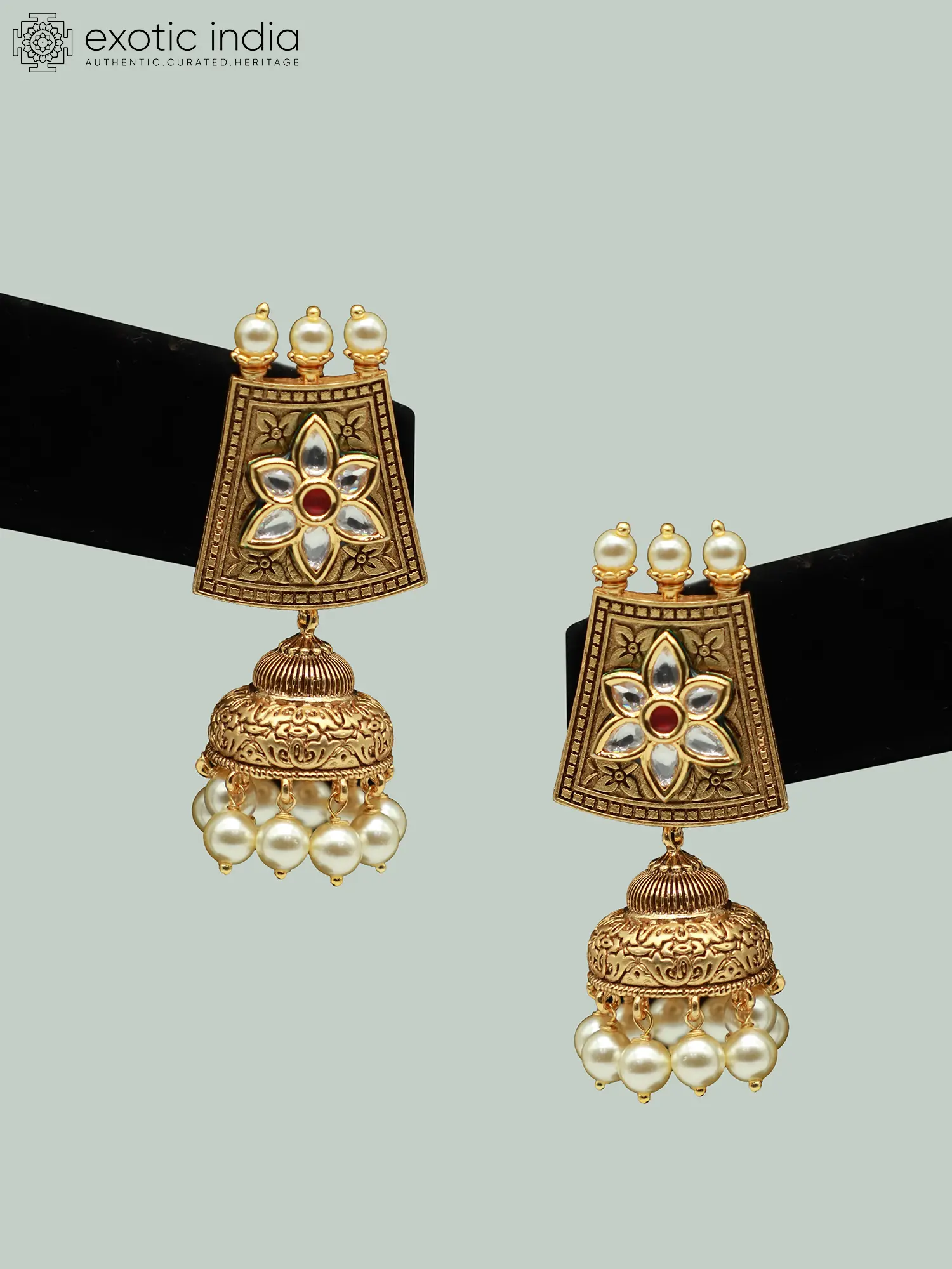 Designer Necklace Set In Matte Finish With Carving And Attractive Earrings