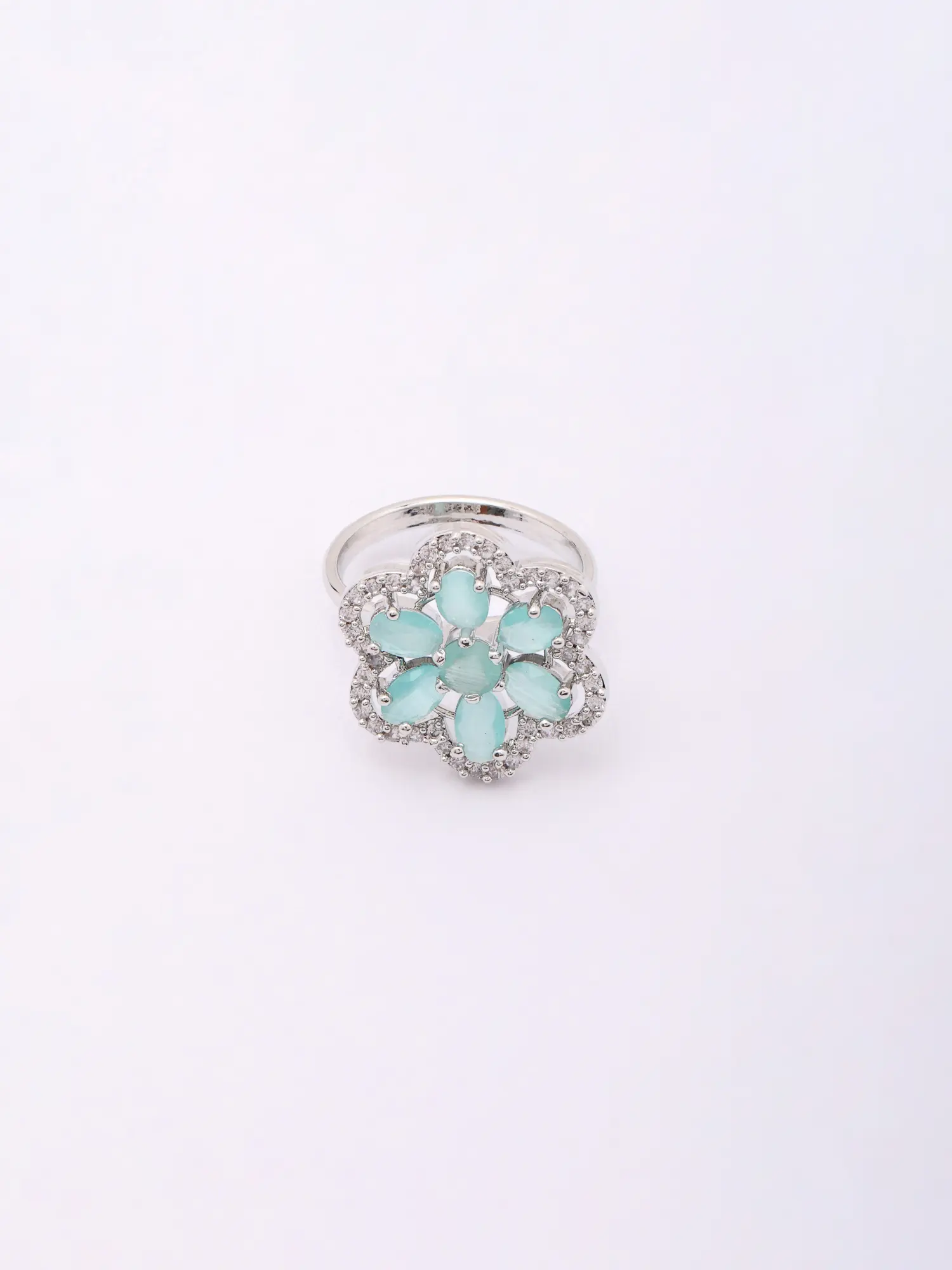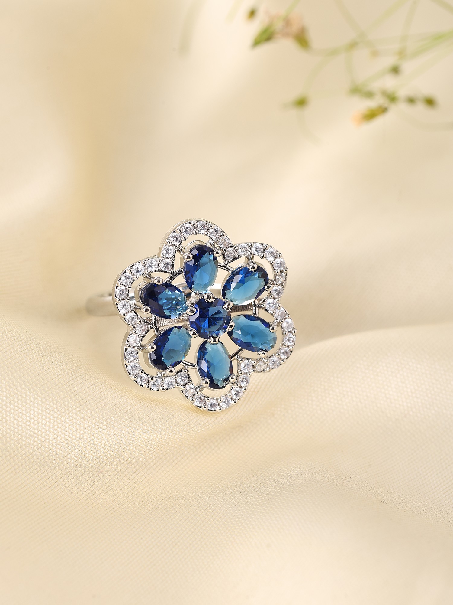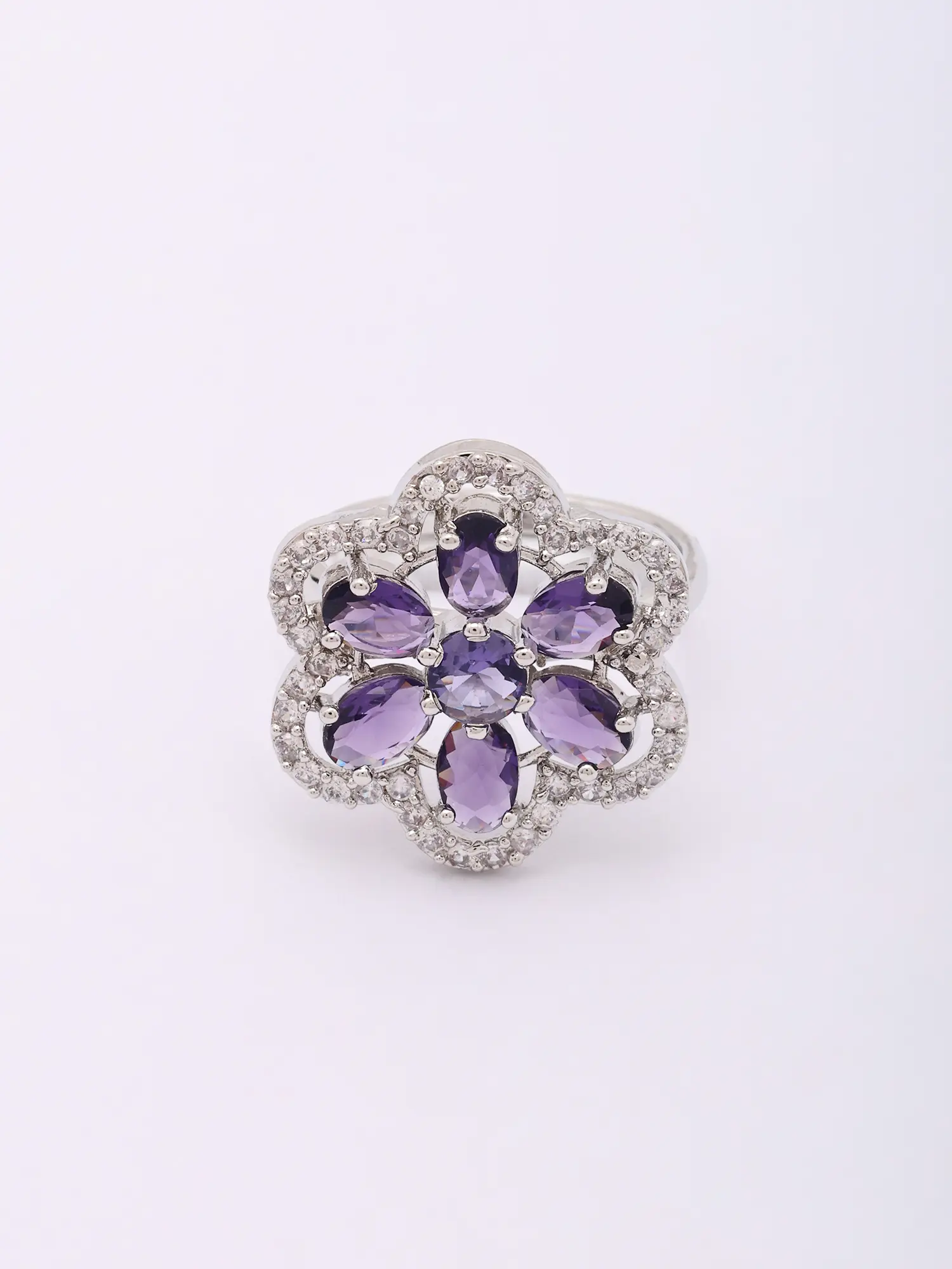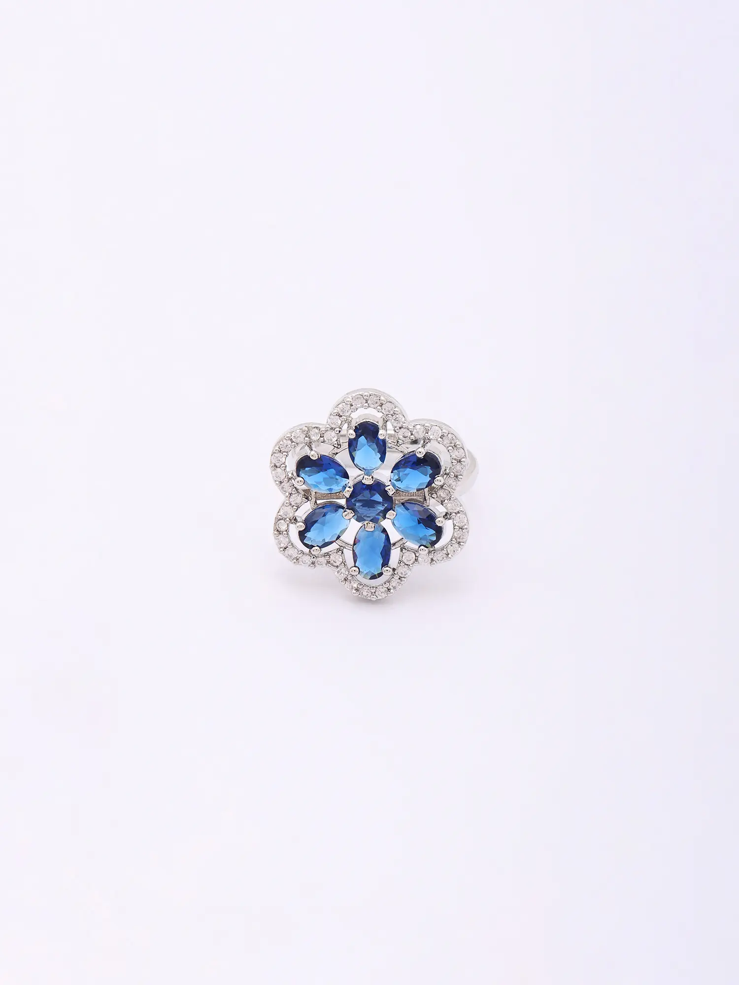 Floral Halo Design Adjustable American Diamond Statement Ring