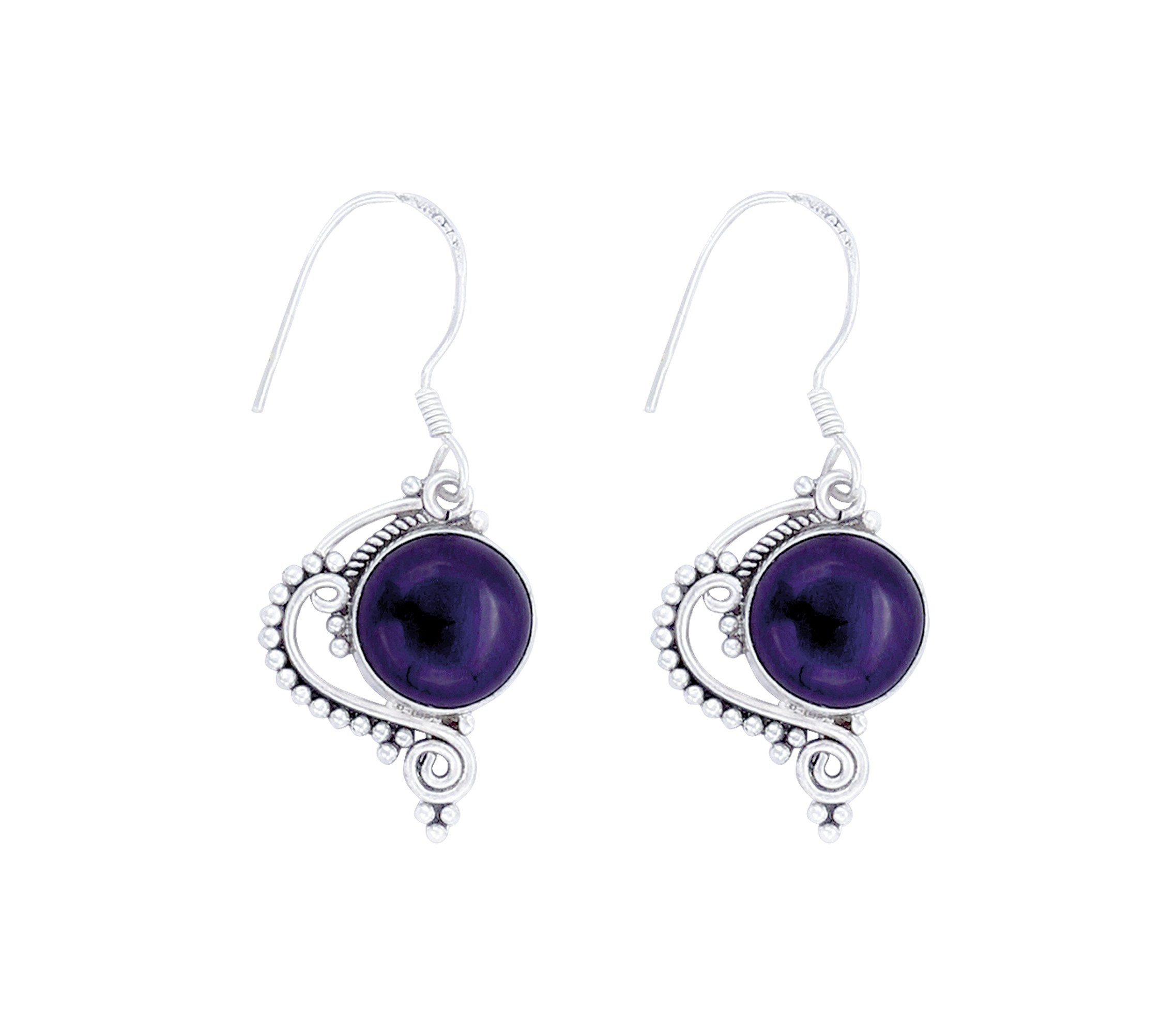 These earrings are meticulously crafted from sterling silver, known for its durability, luster, and hypoallergenic properties. The sterling silver setting complements the amethyst perfectly, allowing the gemstone's natural beauty to shine through. The intricate details of the heart-shaped design, with its graceful swirls and beaded accents, showcase the superior craftsmanship that went into creating this exquisite piece. Each earring is carefully finished to ensure a smooth, polished surface, providing a comfortable and luxurious feel against the skin. The high-quality sterling silver used is tarnish resistant, ensuring your earrings will retain their beauty for years to come.