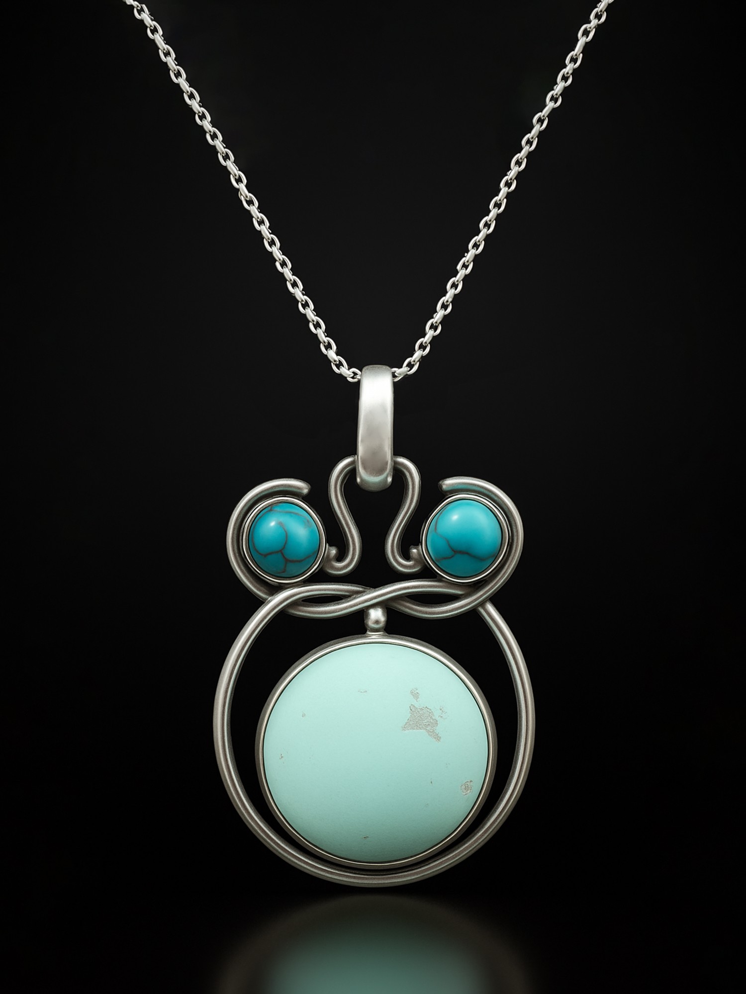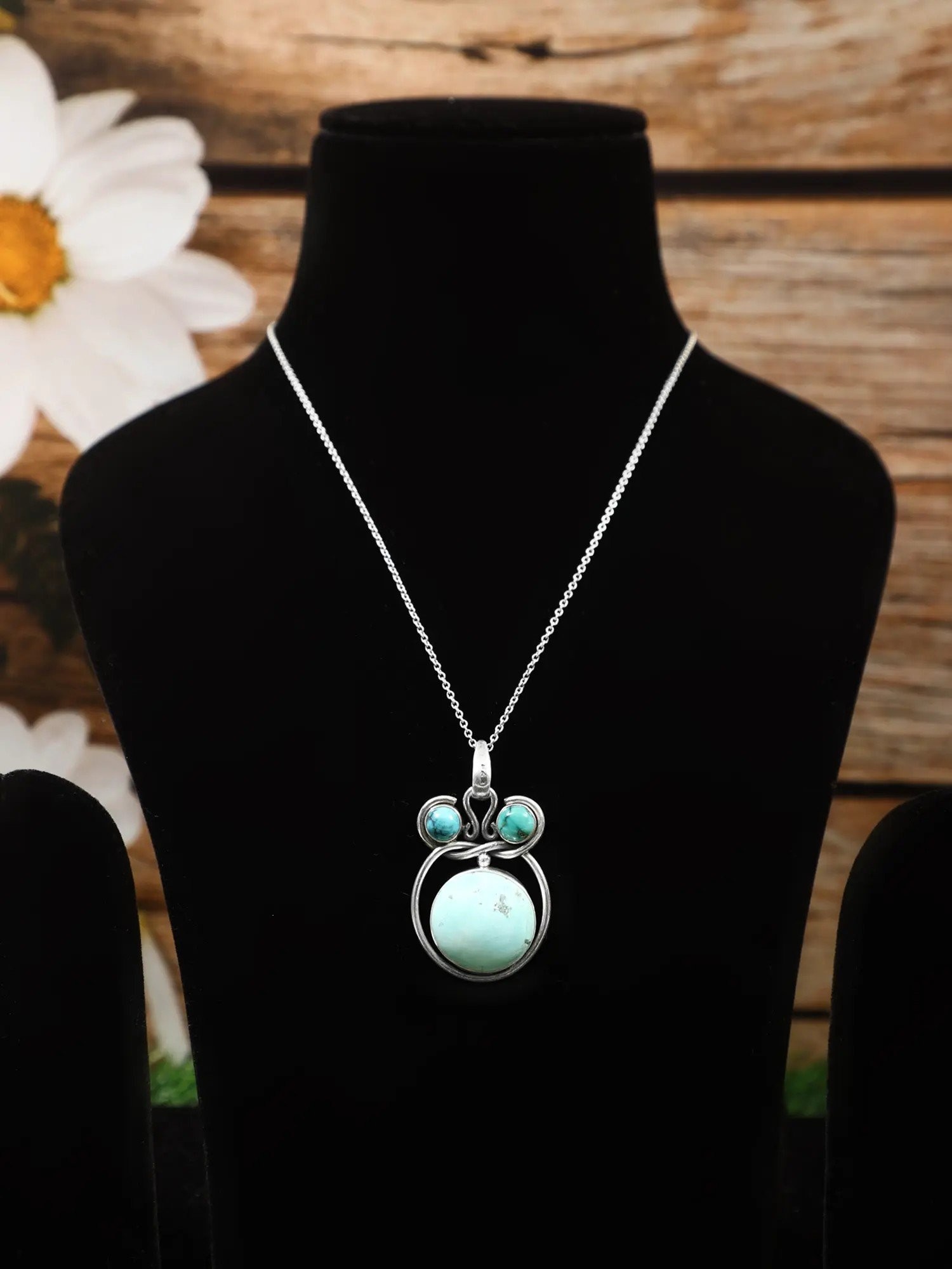 Adorn yourself with the Designer Sterling Silver Pendant featuring a captivating Turquoise Gemstone. This exquisite piece blends the elegance of sterling silver with the enchanting allure of turquoise, creating a timeless accessory. The pendant showcases intricate design details, reflecting craftsmanship and artistry. The vivid turquoise gemstone adds a pop of color, making it a versatile choice for various occasions. Whether worn casually or for more formal events, this pendant effortlessly combines style and sophistication.