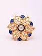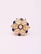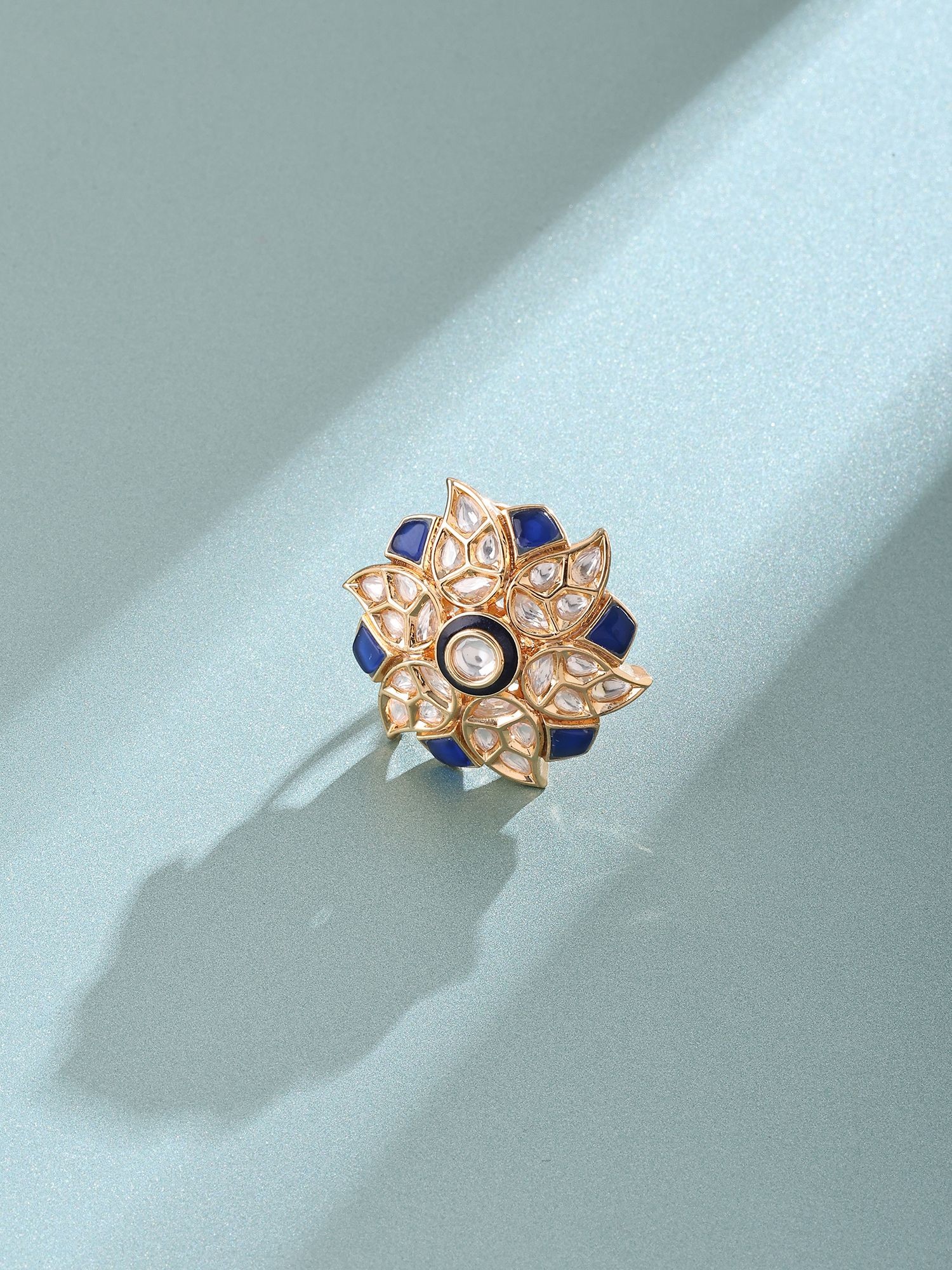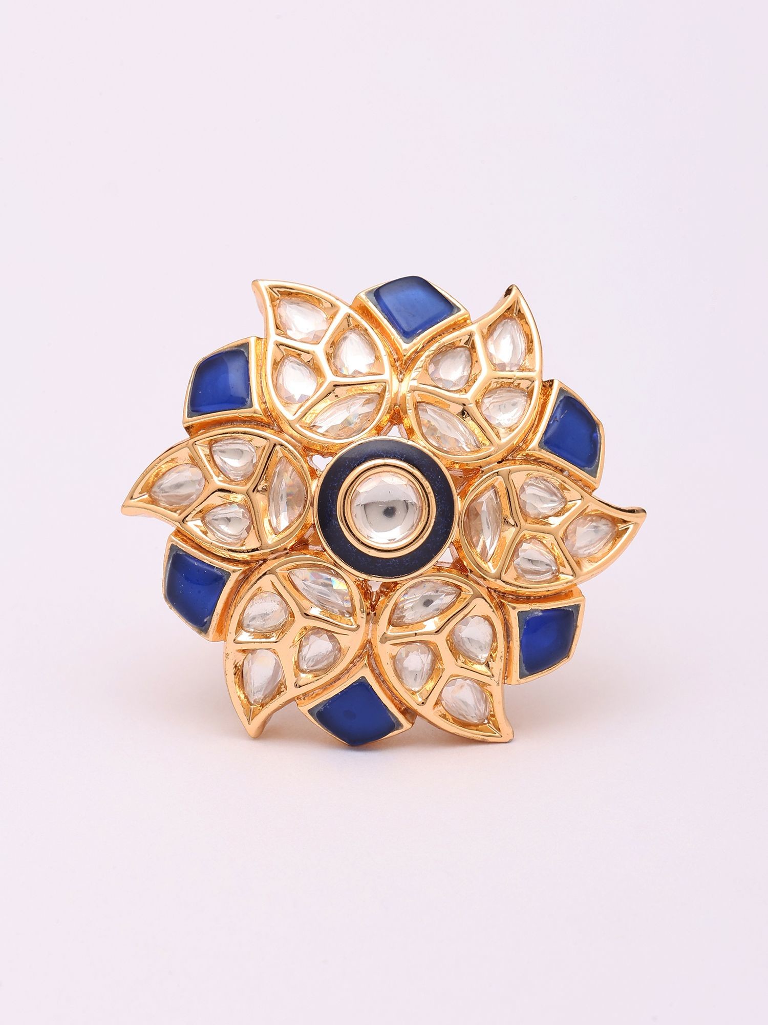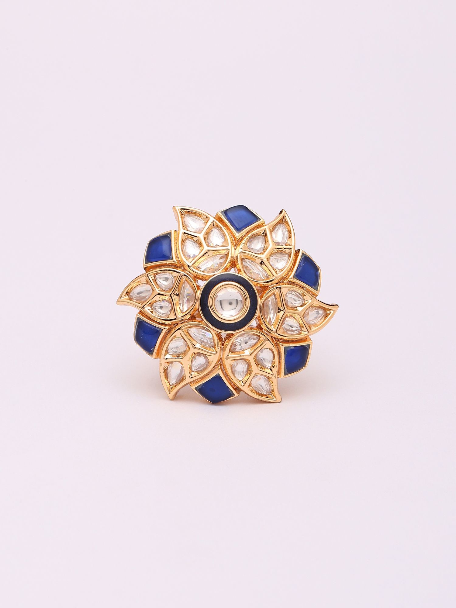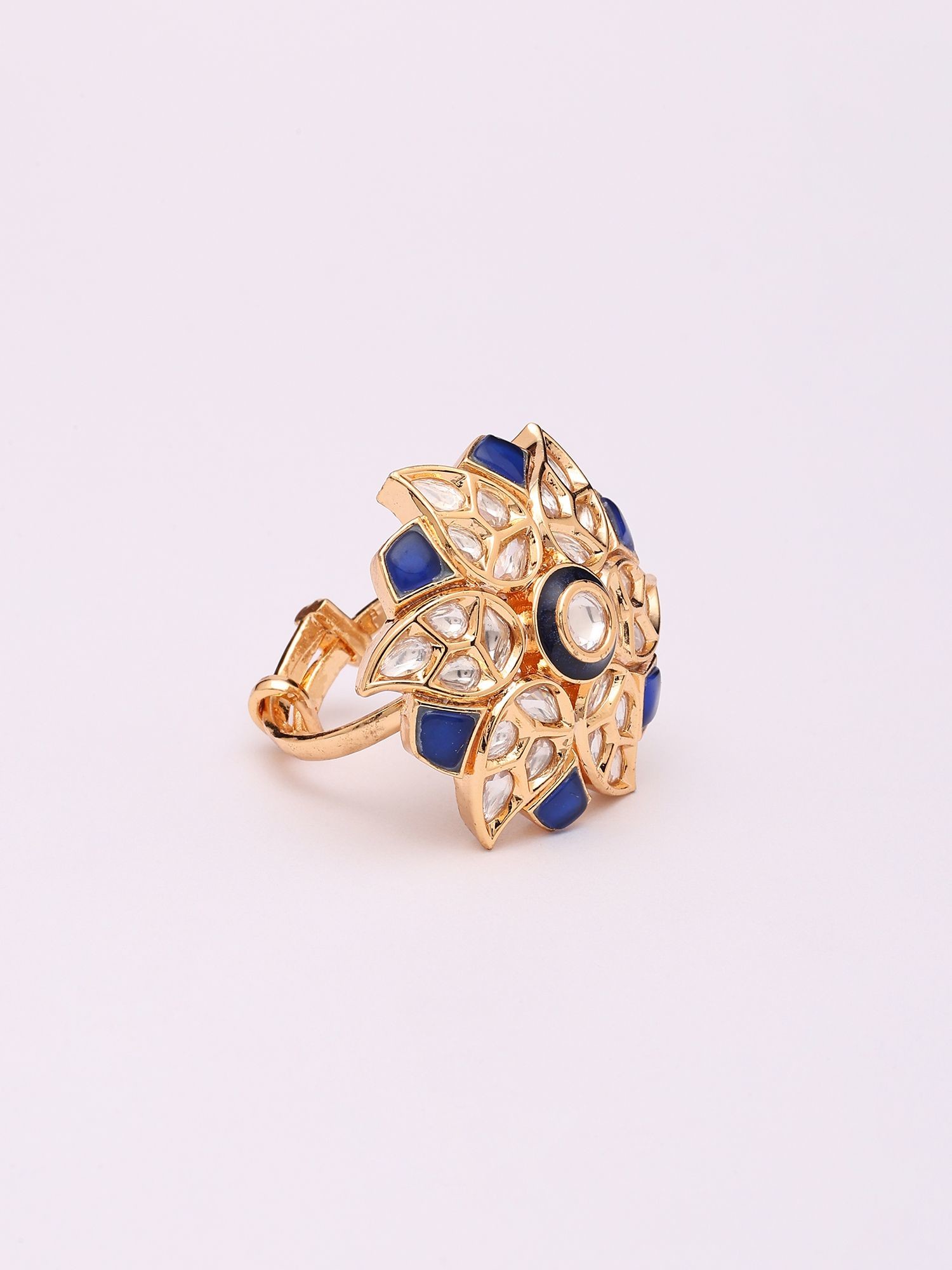 Adjustable Kundan Ring with Blue Flower Design and Stone Studs