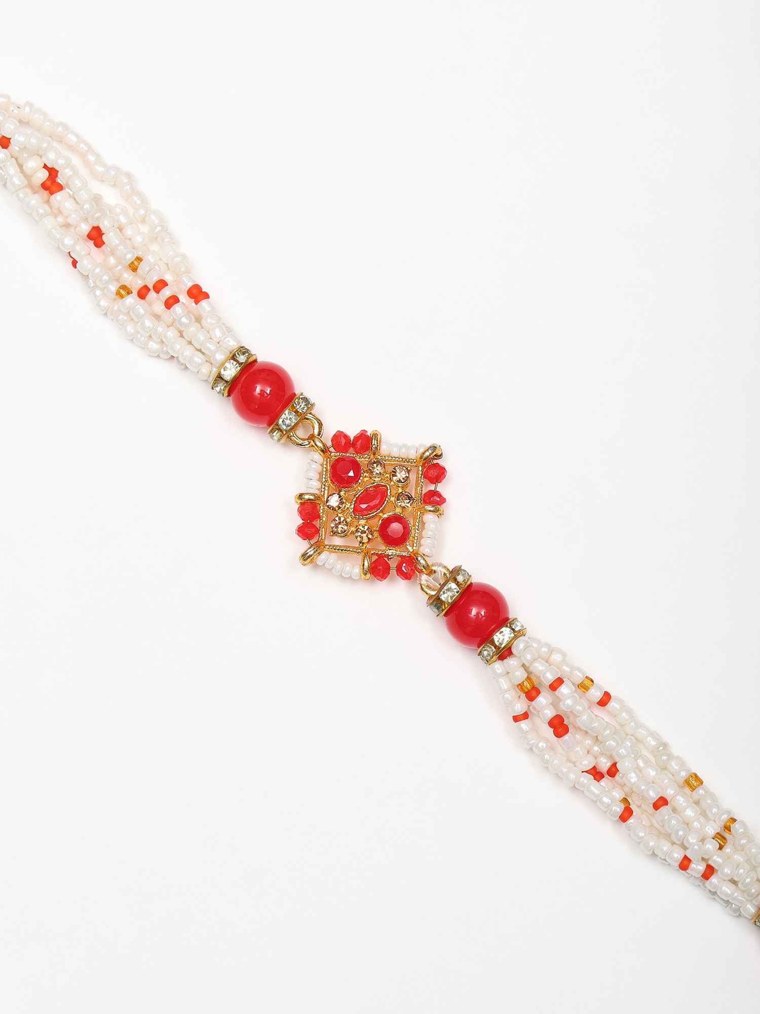 Diamond Shape Adjustable Bracelet Rakhi with Studded Stone and Beads
