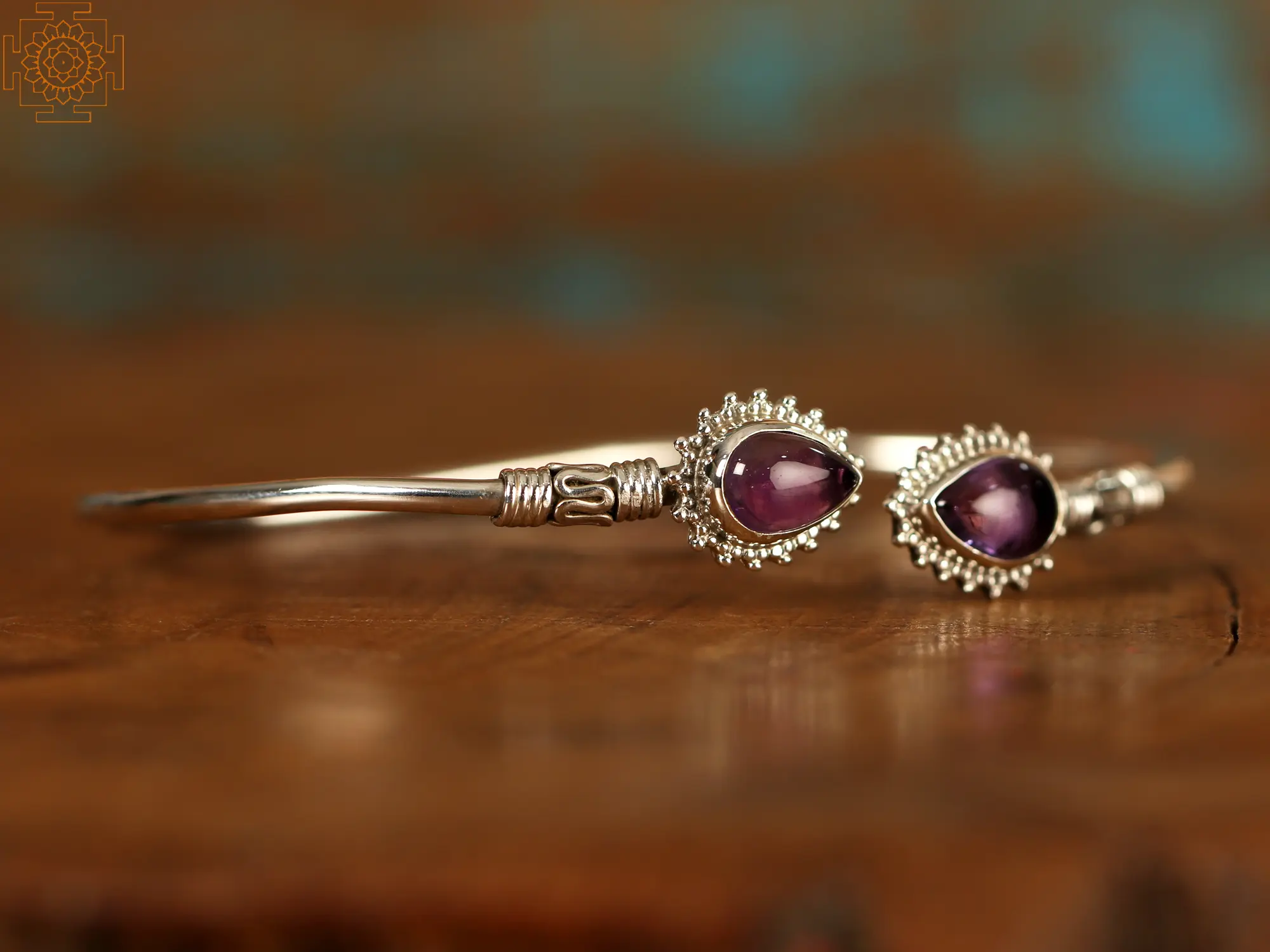 The wrist jewelry is one item that has played a very important role in fashion statements. This Double Stone Designer Bracelet is a sterling silver masterpiece that blends modern style with tribal-inspired artistry and helps make a fashion statement. This open bracelet enchants with twin amethyst stones adorning its entrance, exuding a royal allure. The neck of the bracelet captivates with a tribal jewelry-inspired design reminiscent of wavy wires that add a touch of cultural sophistication. This piece is a harmonious marriage of contemporary chic and traditional craftsmanship as the bracelet graces your wrist with the timeless beauty of amethyst and the intricate allure of tribal motifs.