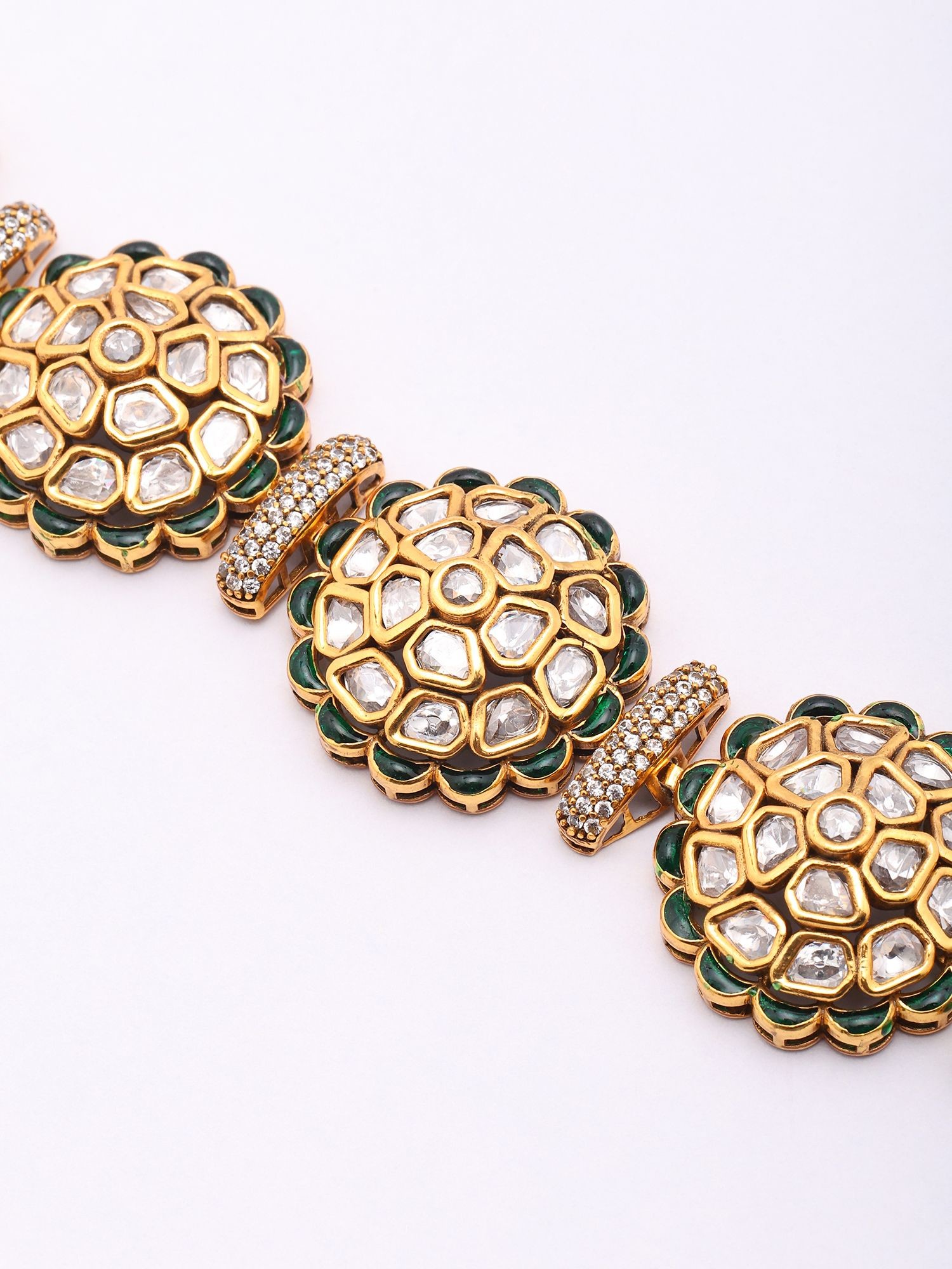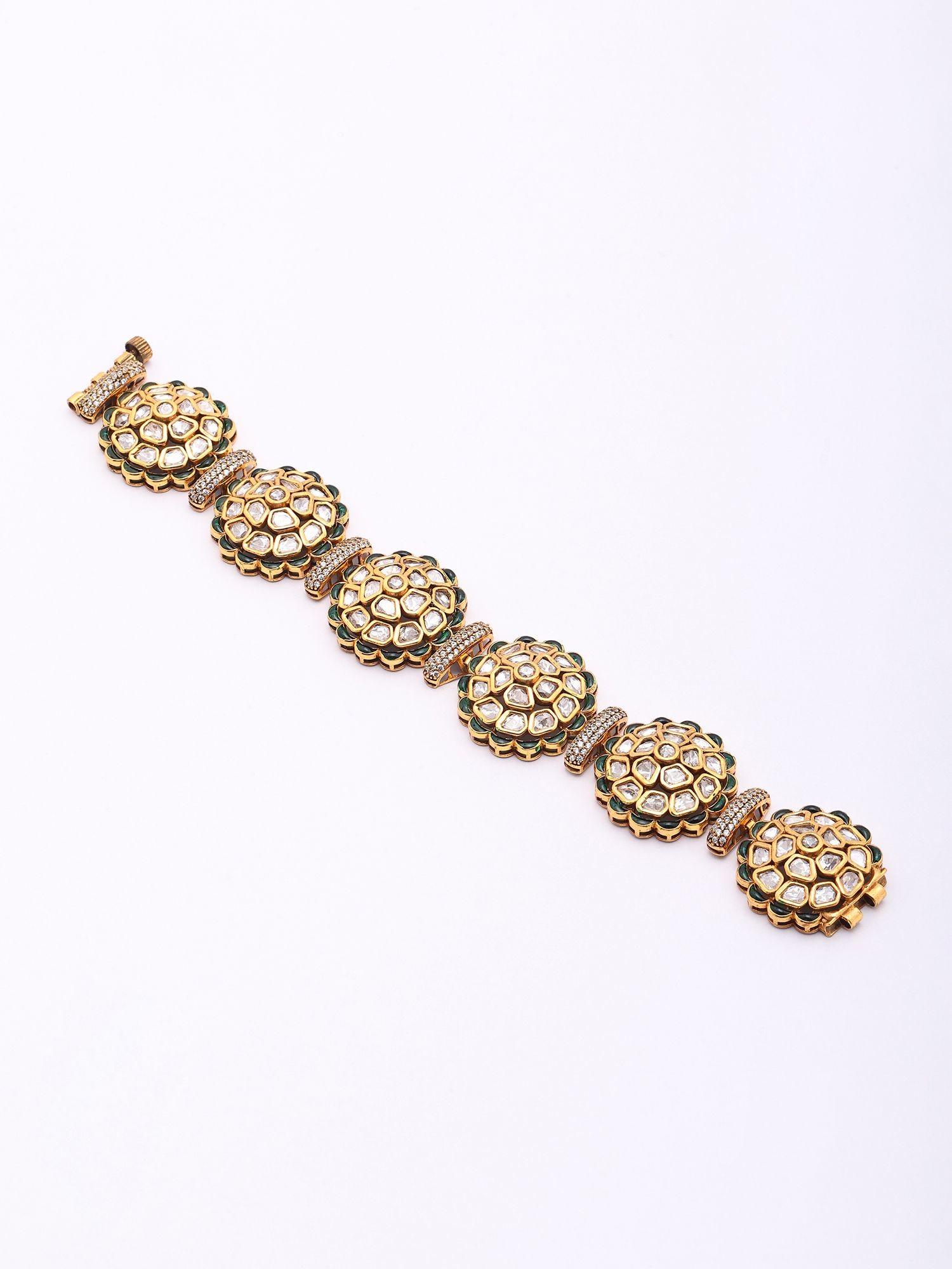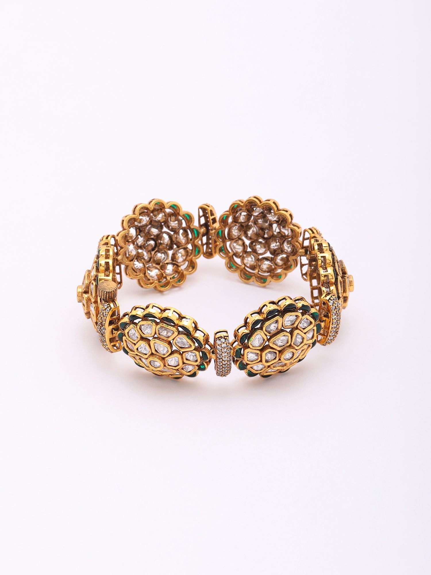 Openable Kundan Bracelet with Floral Design & Green Stones