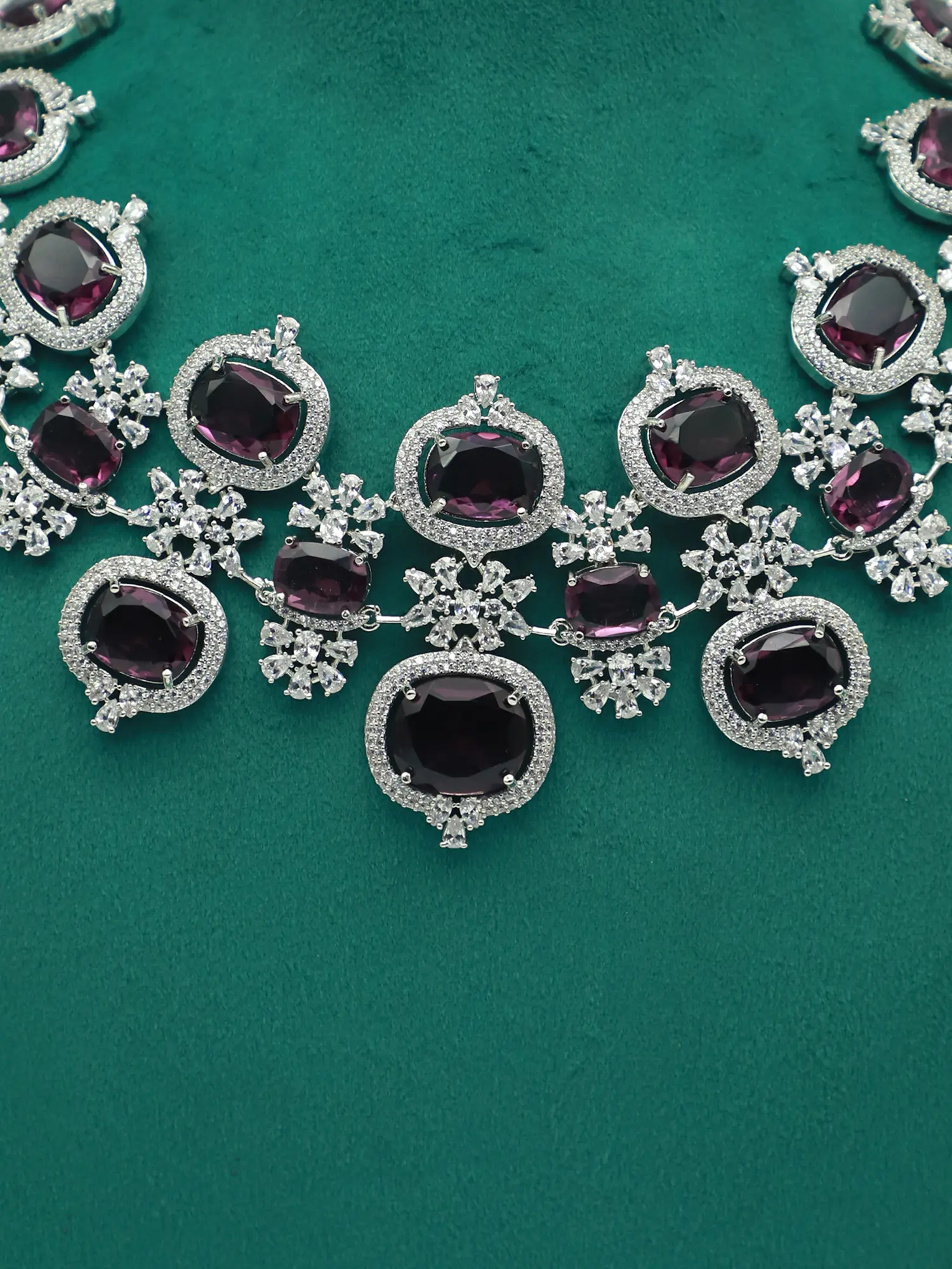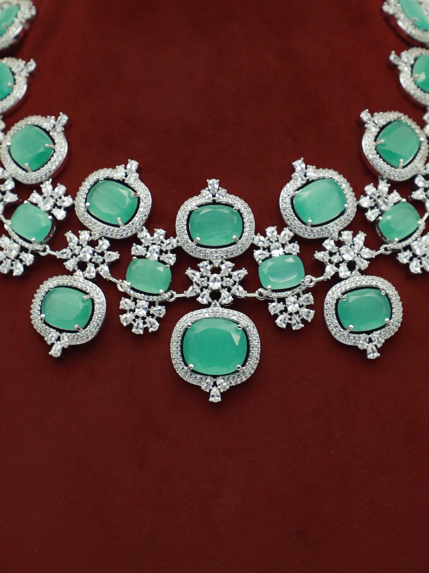 Elegant American Diamond Stone Studded Choker Necklace With Earrings And Mangtika