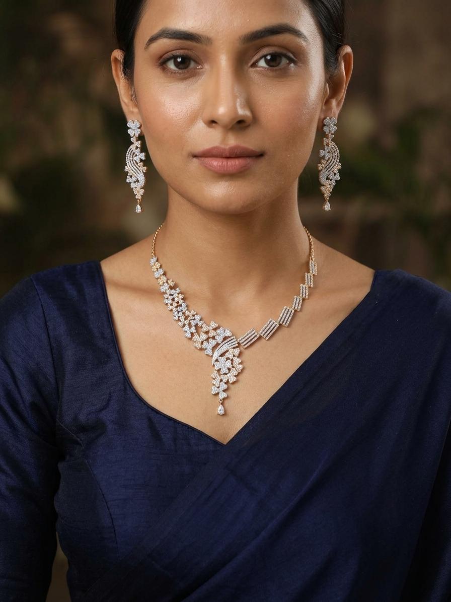 American Diamond Elegant Stone Studded Necklace With Matching Earrings