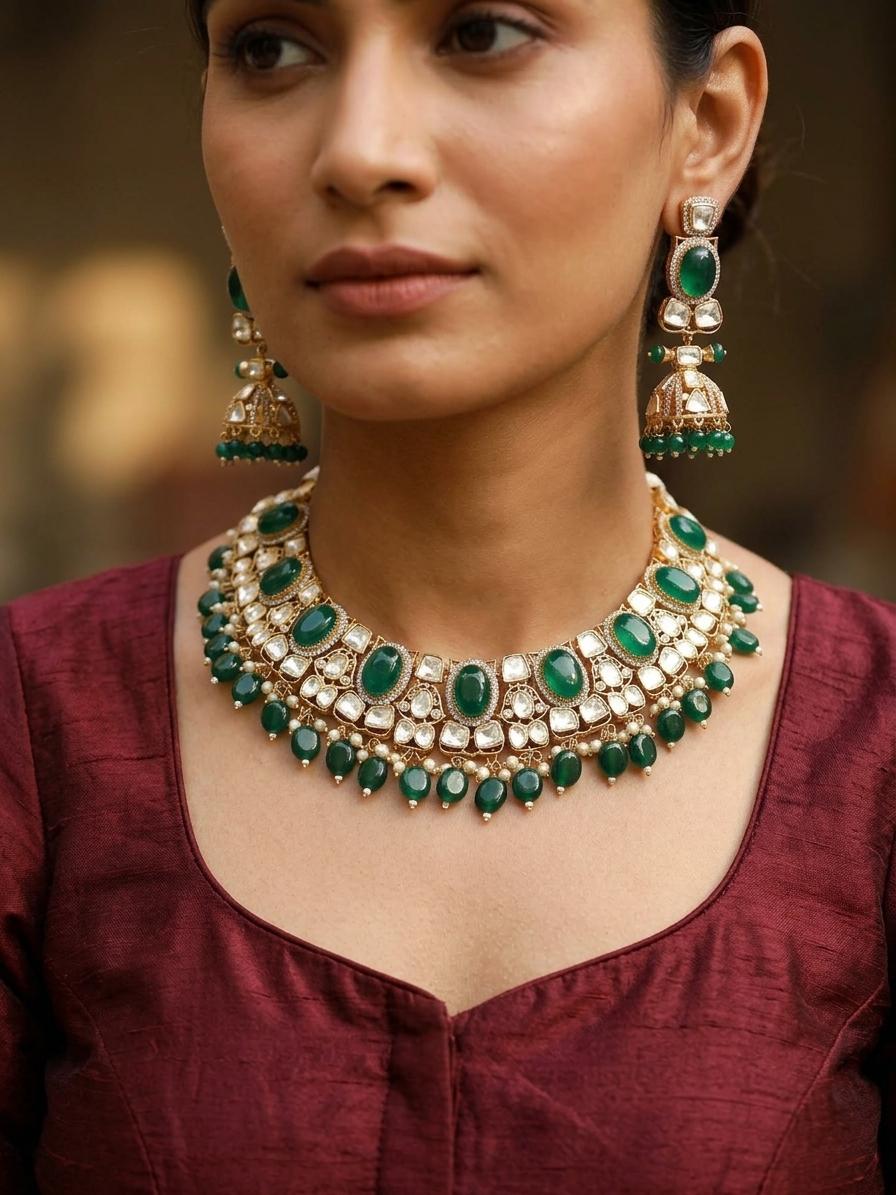 A Symphony of Emerald and Gold: An Exquisite Kundan Necklace Set