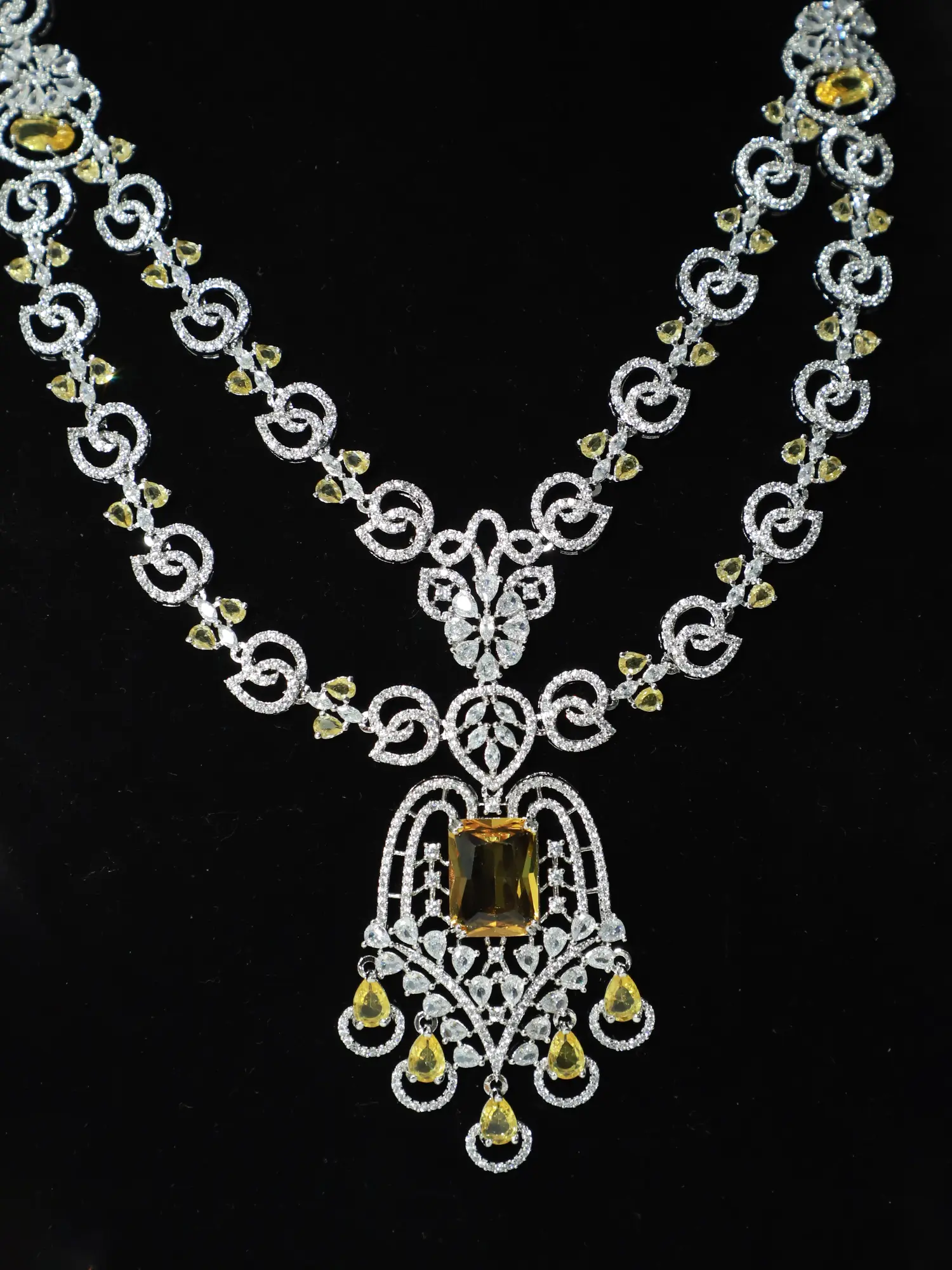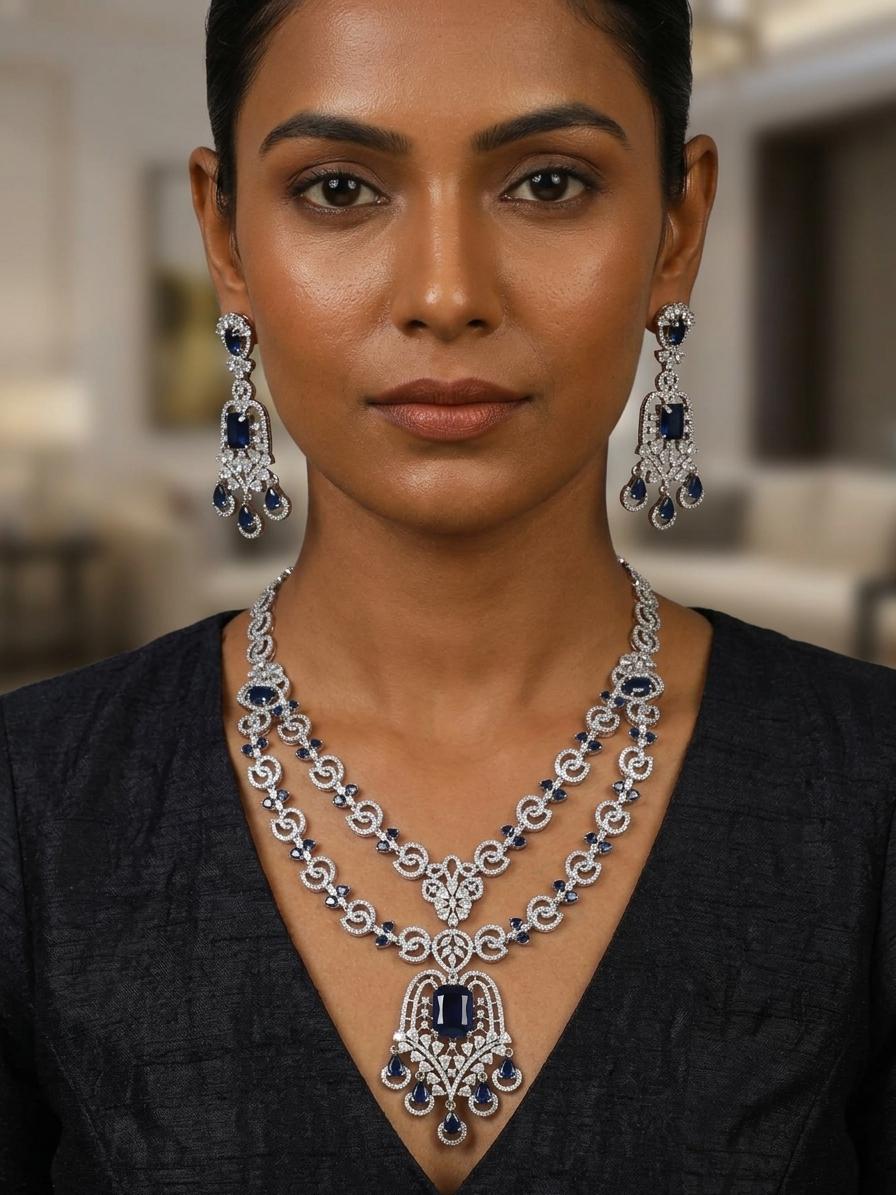 Stunning Design Elegant Stone Studded Embellished American Diamond Necklace Set With Earrings