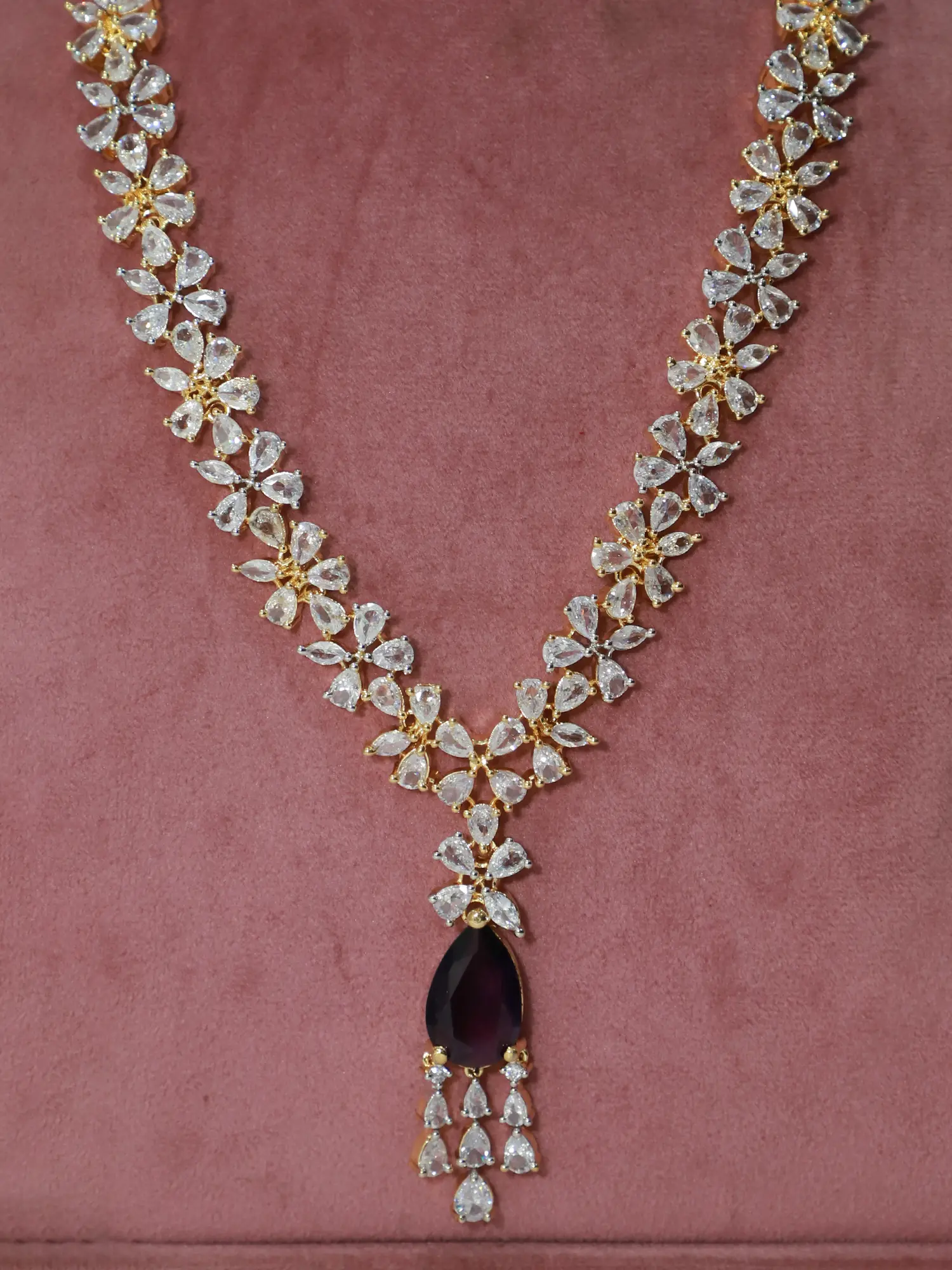 Elegant American Diamond Stone Studded Necklace With Matching Earrings