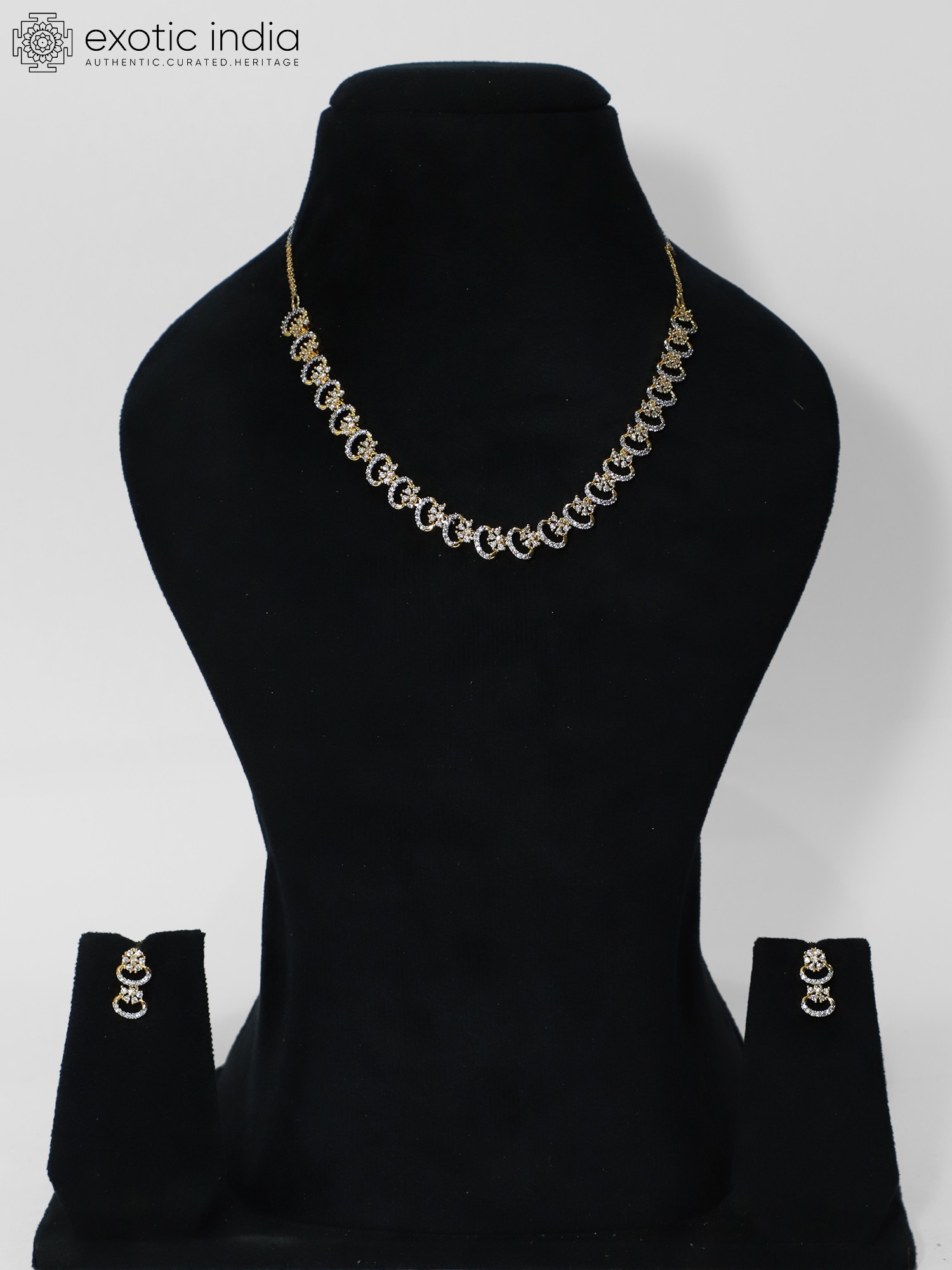 American Diamond Elegant Stone Studded Necklace With Matching Earrings