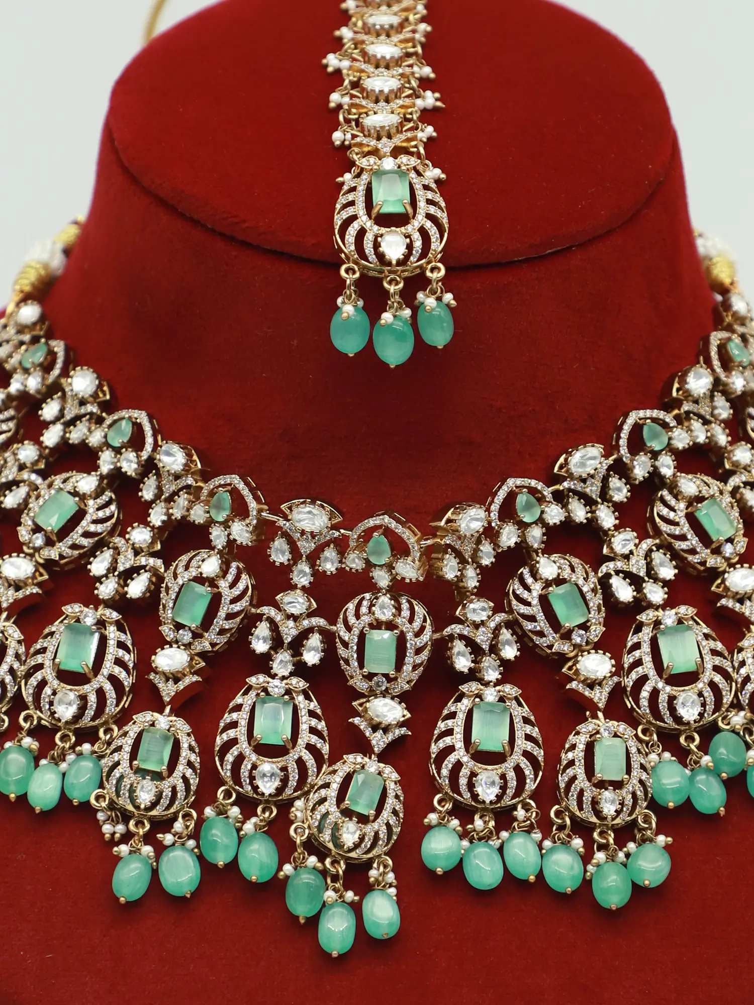 NECKLACE : 20 INCH LENGTH X 5.3 INCH WIDTH EARRINGS : 2.5 INCH HEIGHT X 1.5 INCH WIDTH Mangtika - 5.2 Inch Length