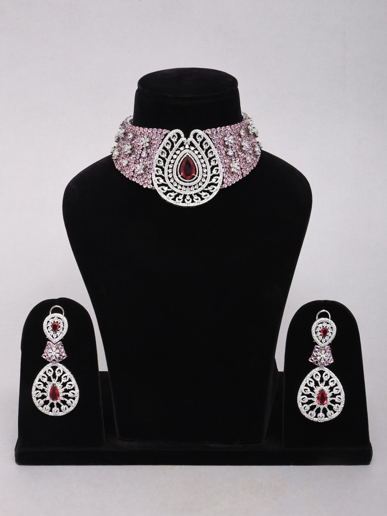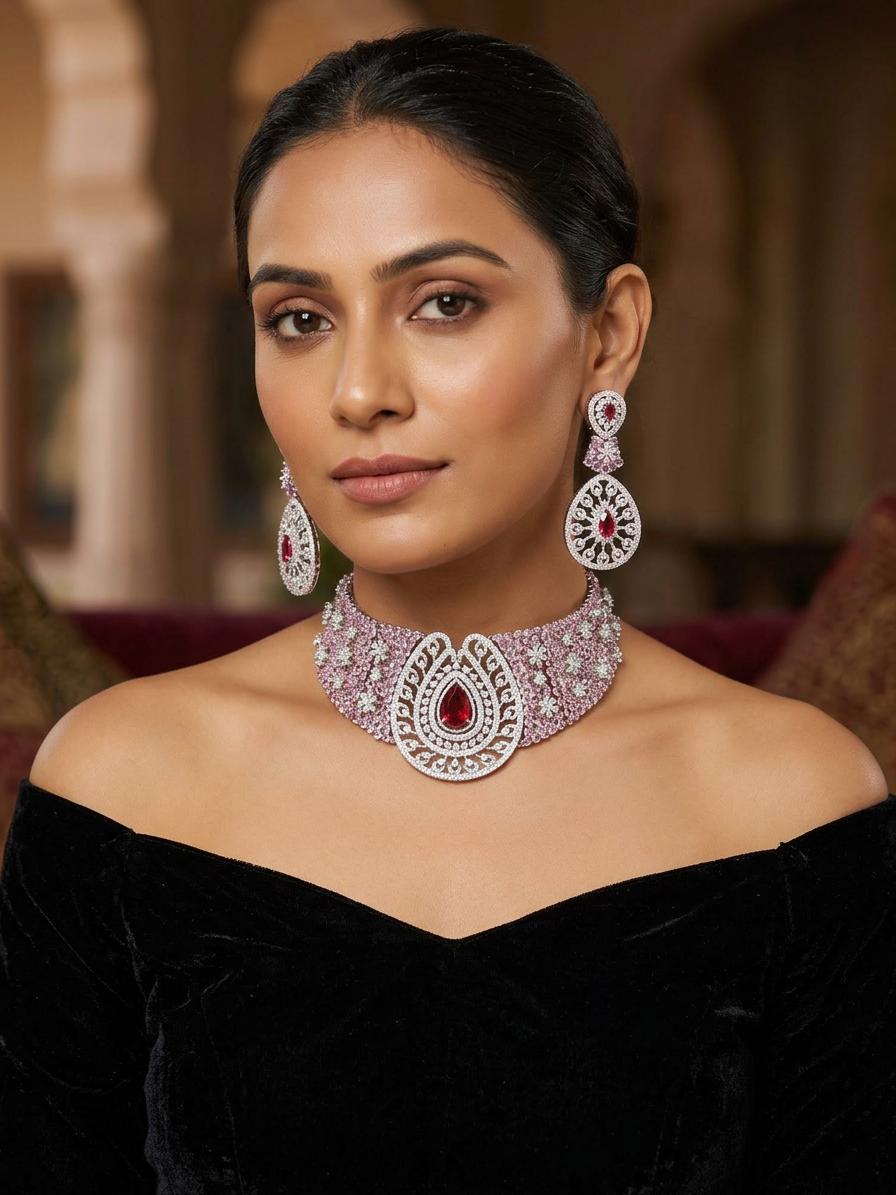 Elegant Necklace and Earring Set with Pink American Diamonds