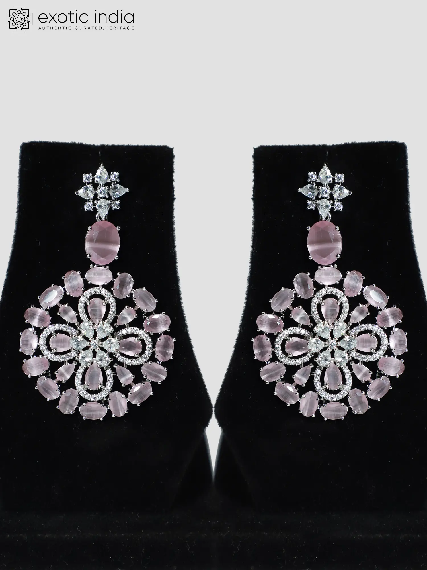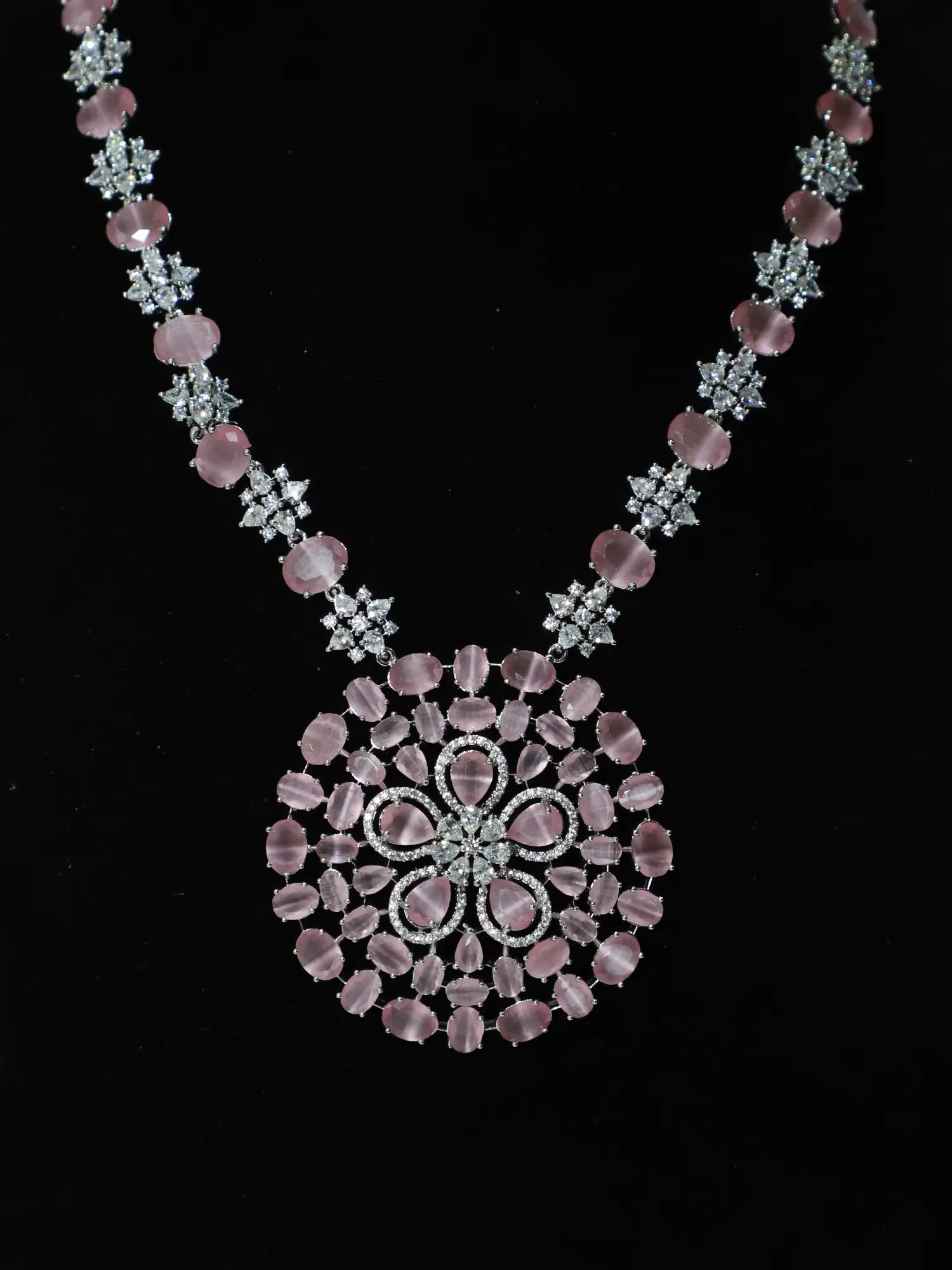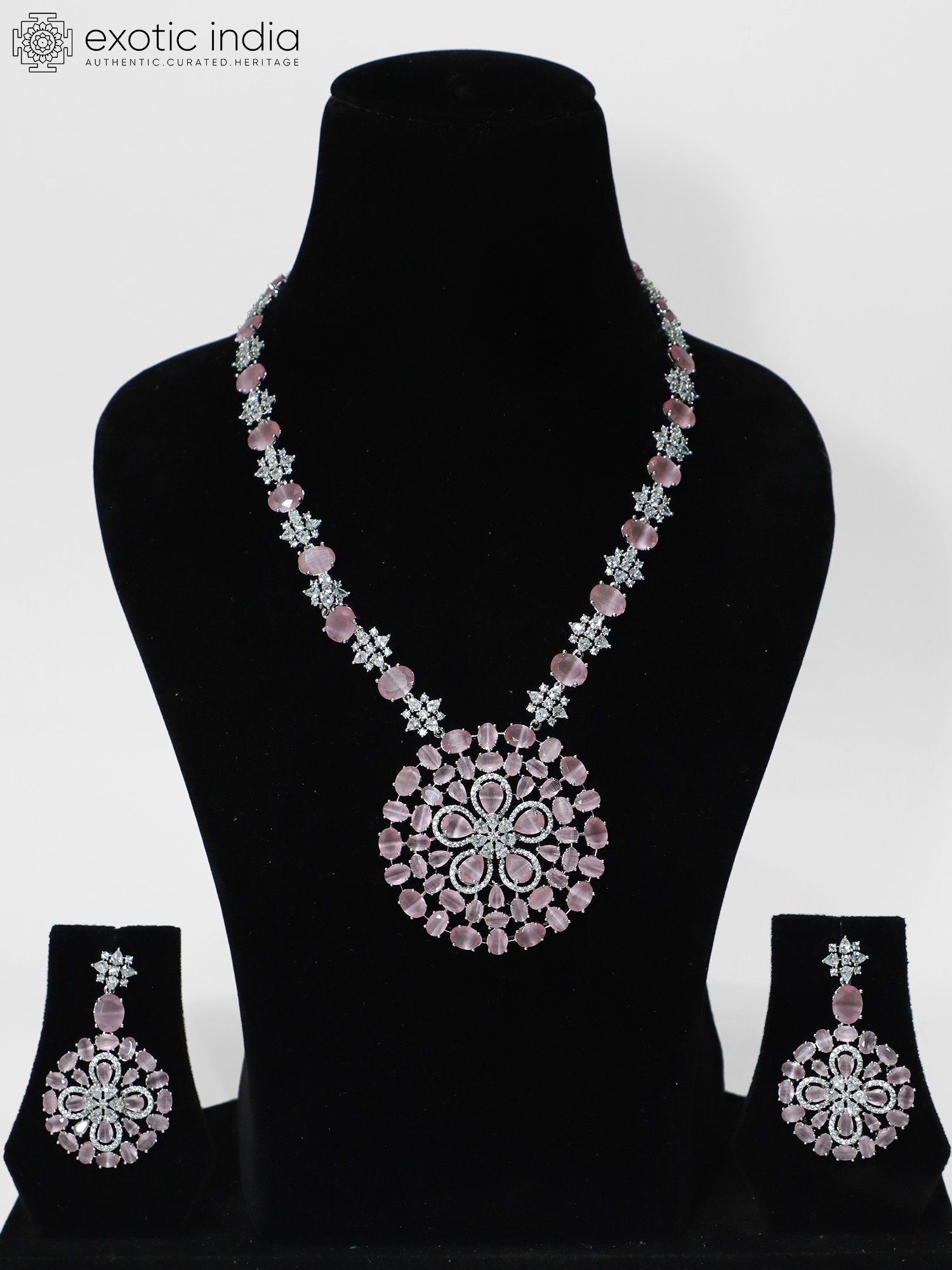 Embellished American Diamond Necklace & Earring Set With Round Sparkling Stones
