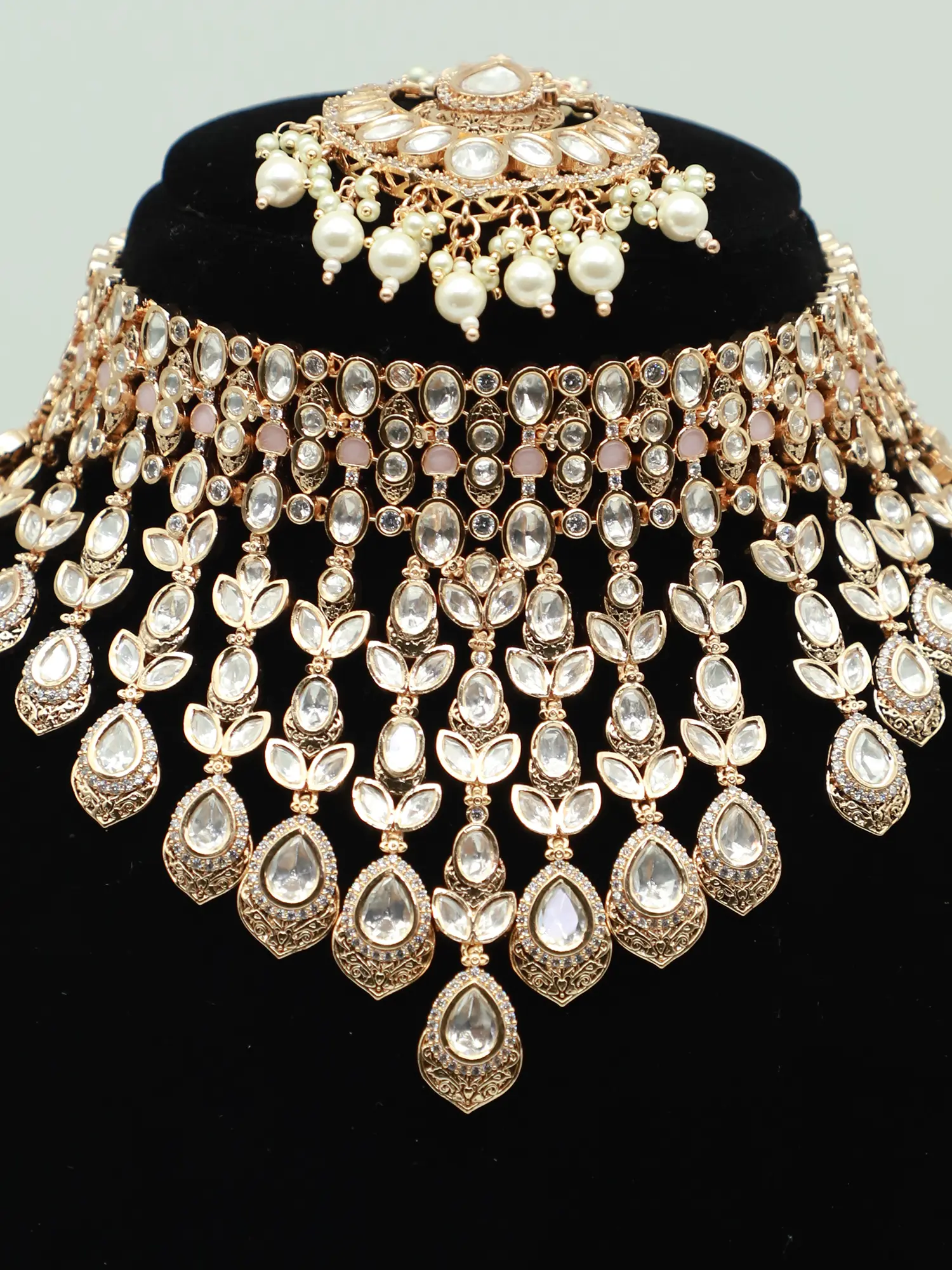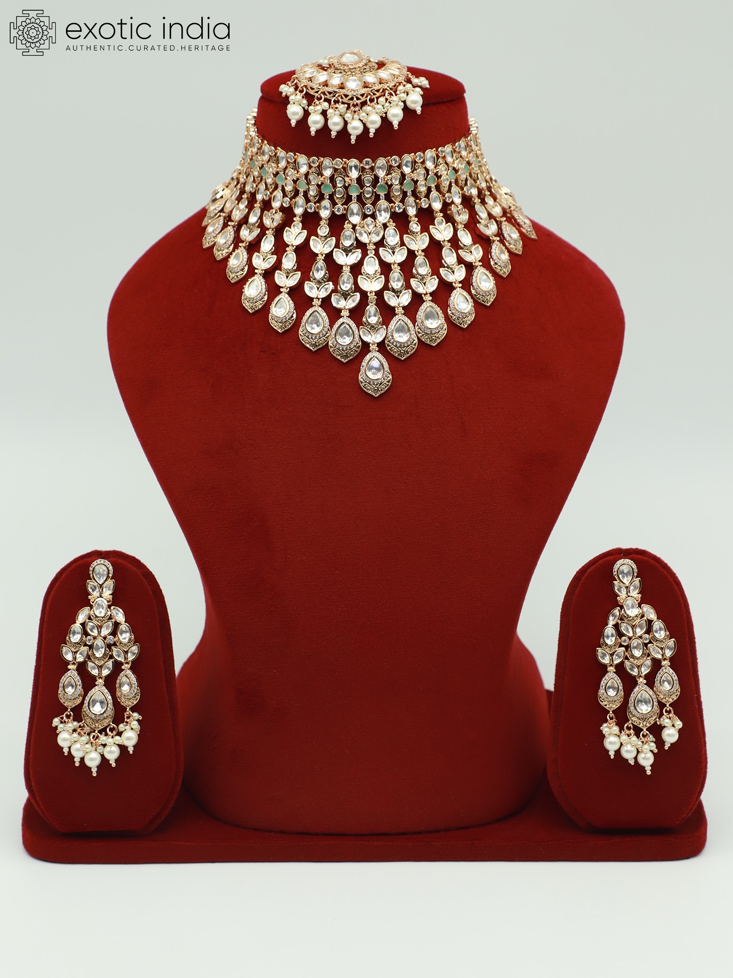Elegant Designer Stone Studded Copper And Kundan Necklace Set With Earrings