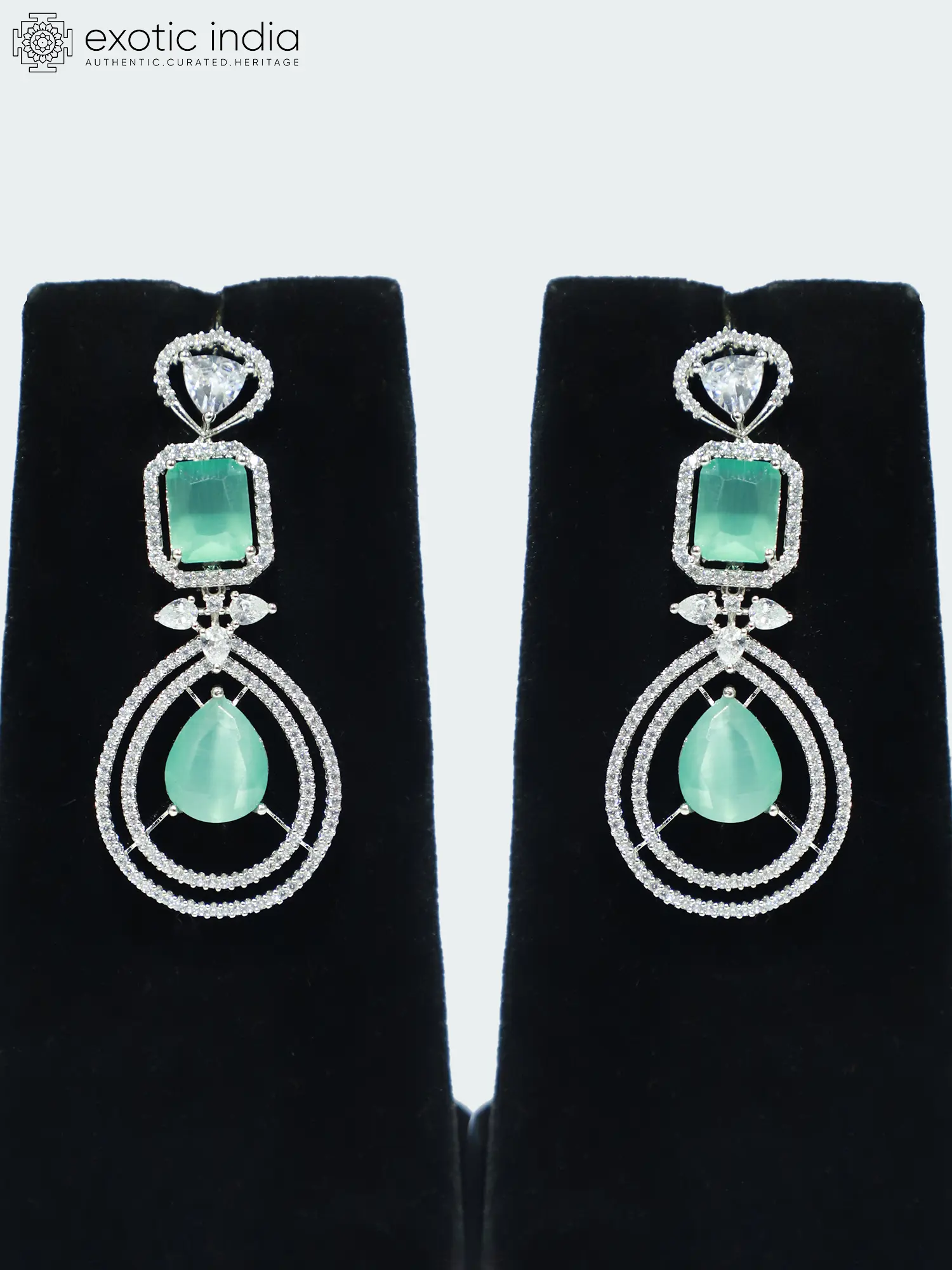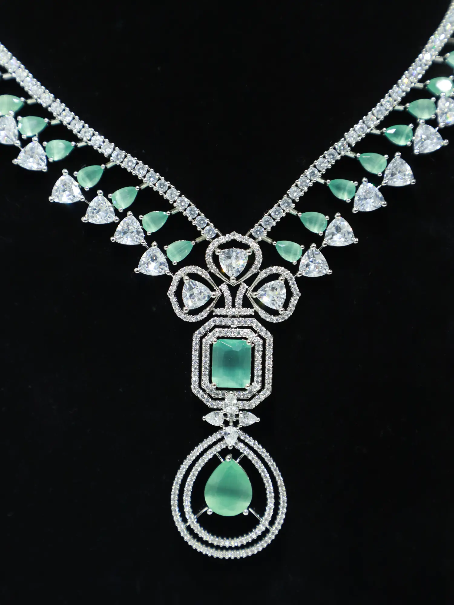 Stunning Floral Design Stone Studded Silver-Tone American Diamond Necklace Set With Earrings
